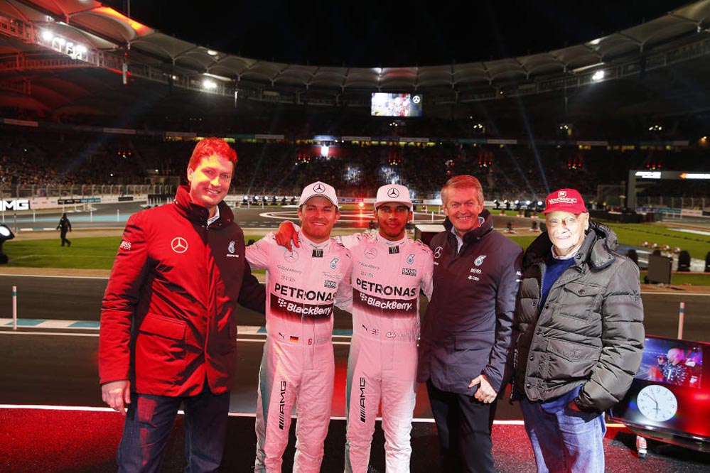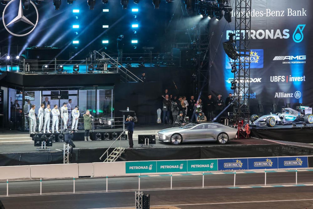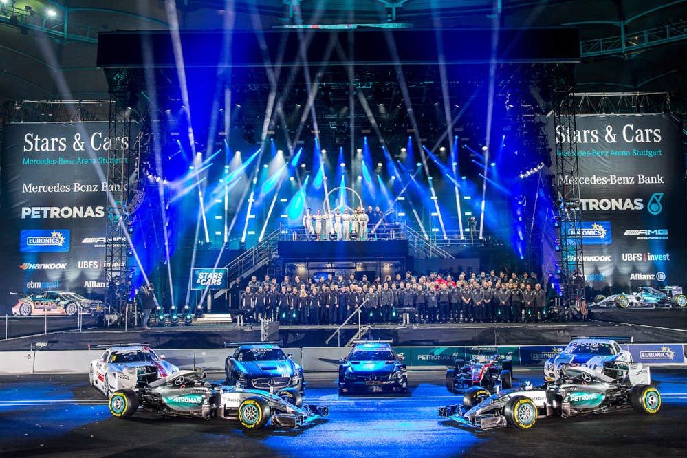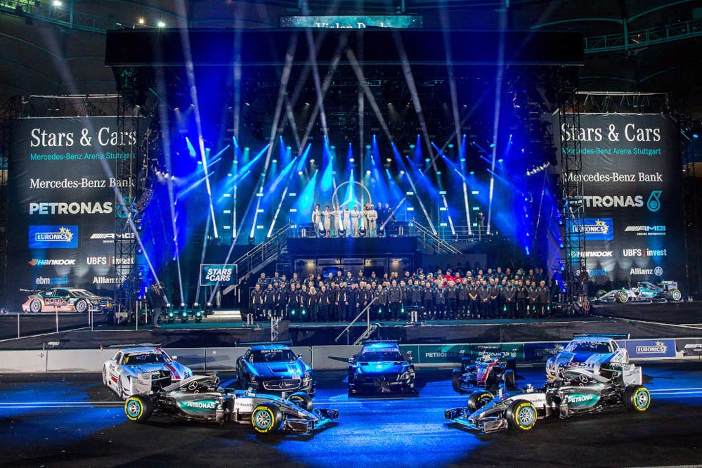 ‘Stars and Cars’ 2015, compuesta por quince carreras, ha contado con los pilotos oficiales en la Fórmula 1, Lewis Hamilton y Nico Rosberg, como los ocho pilotos oficiales del DTM, entre ellos Dani Juncadella y seis pilotos más escogidos por los aficionados. Asimismo, también hicieron acto de presencia, incluso a los mandos de modelos legendarios de Mercedes, expilotos como Stirling Moss, Niki Lauda y Mika Hakkinen.