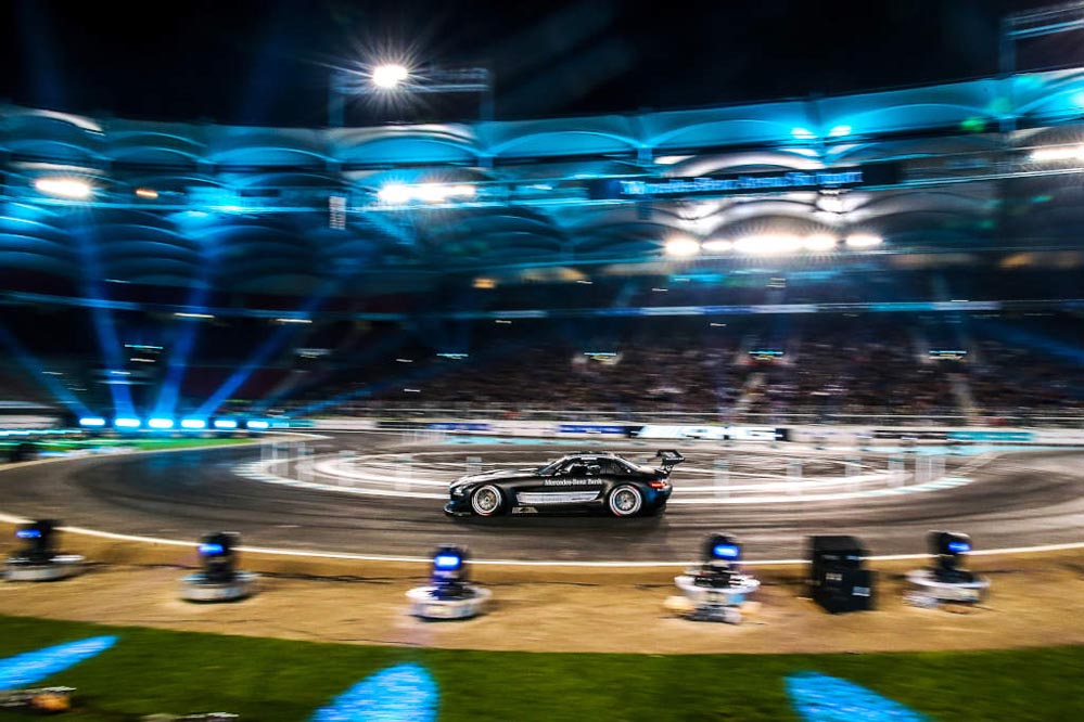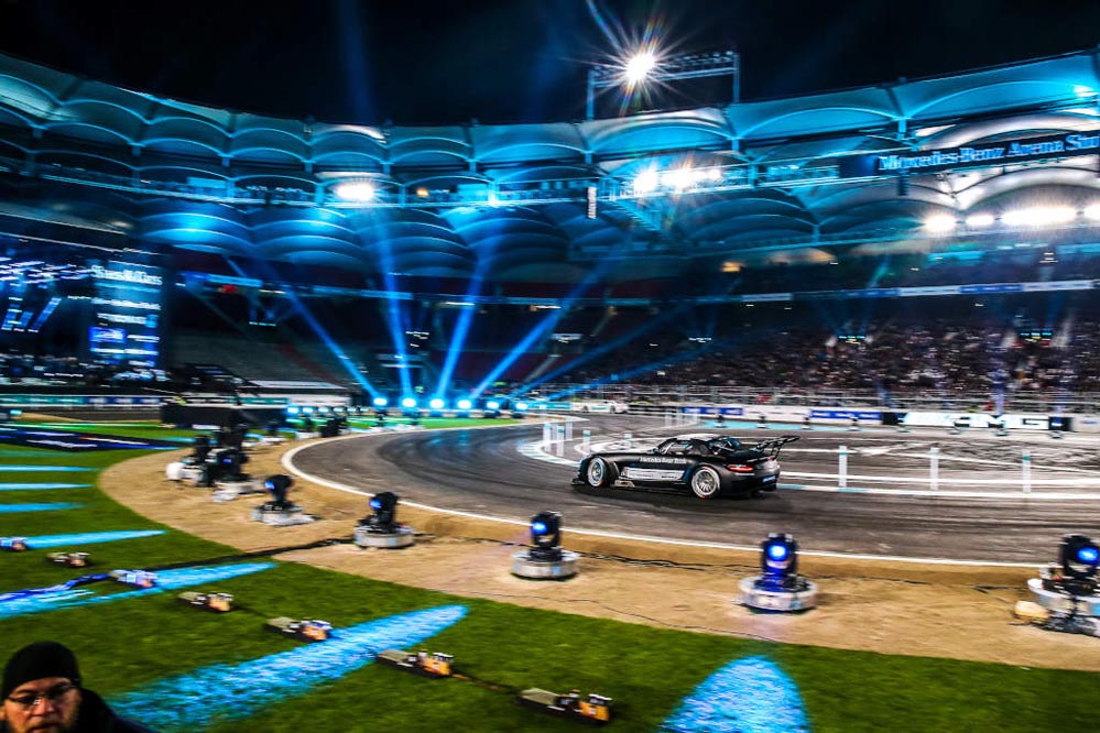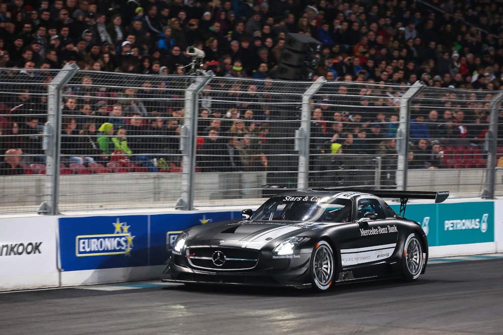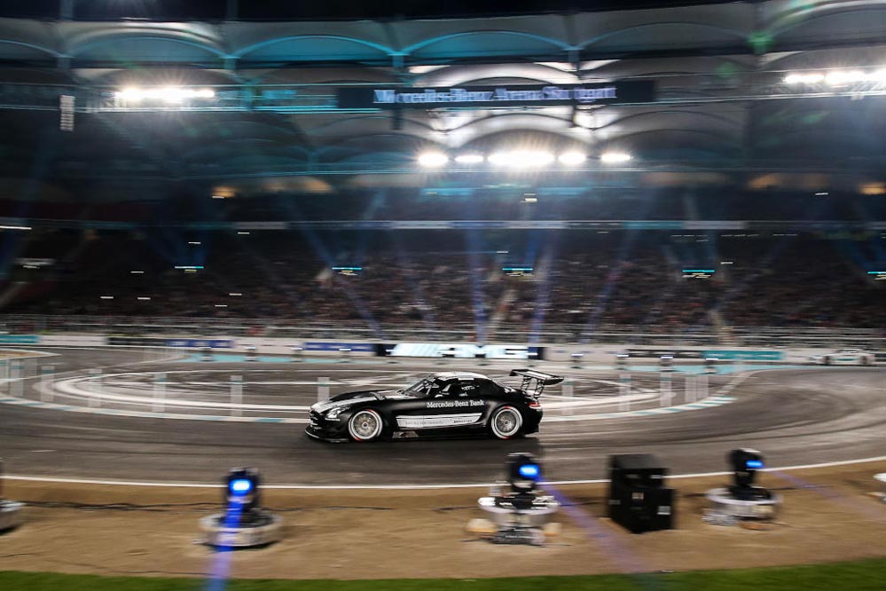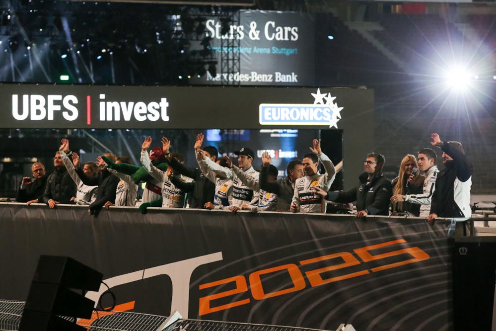 El piloto español Dani Juncadella ha conseguido la victoria en el ‘Stars and Cars’ 2015, la gran fiesta de la compañía de la estrella que se ha celebrado en el Mercedes-Benz Arena de Stuttgart.