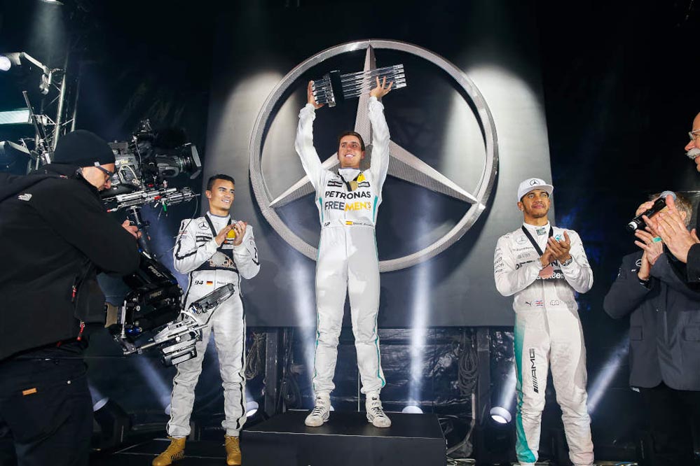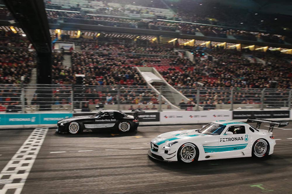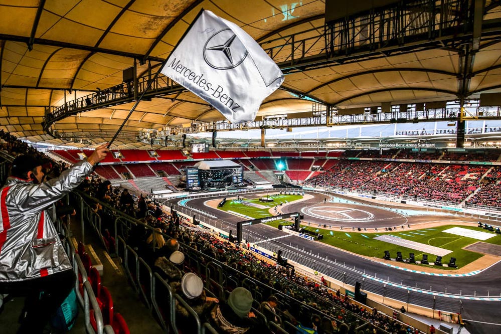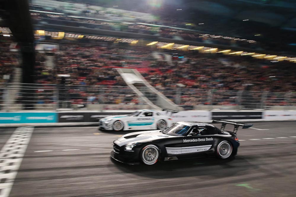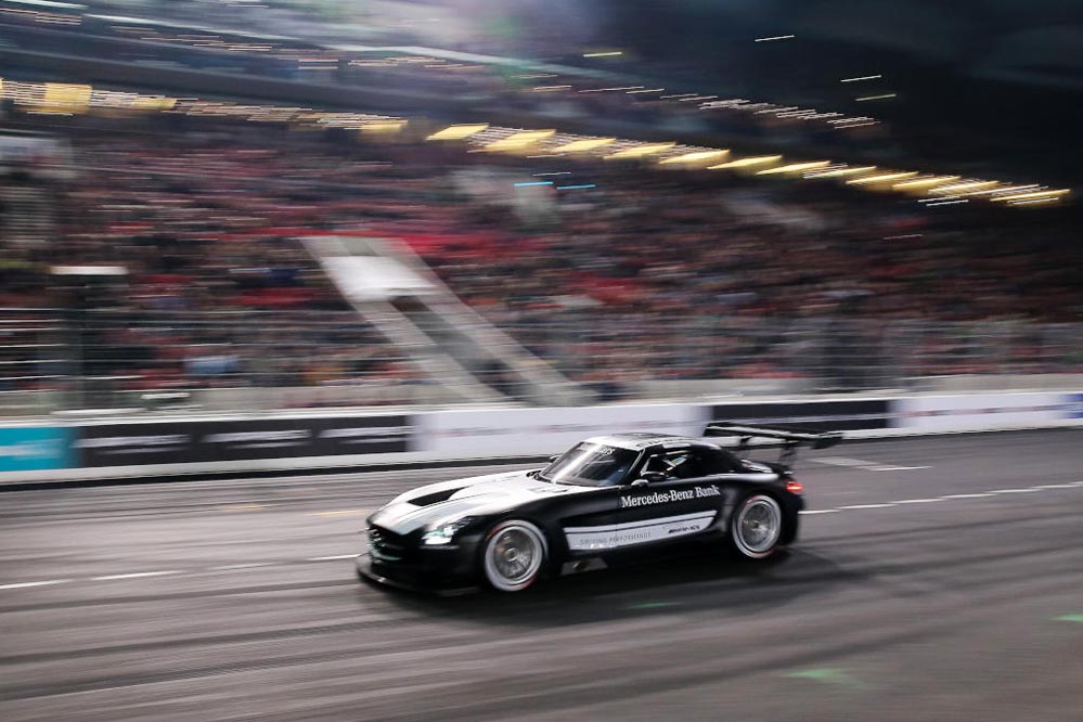 El piloto español Dani Juncadella ha conseguido la victoria en el ‘Stars and Cars’ 2015, la gran fiesta de la compañía de la estrella que se ha celebrado en el Mercedes-Benz Arena de Stuttgart.