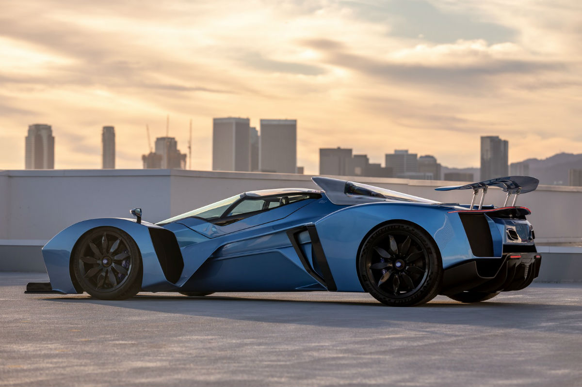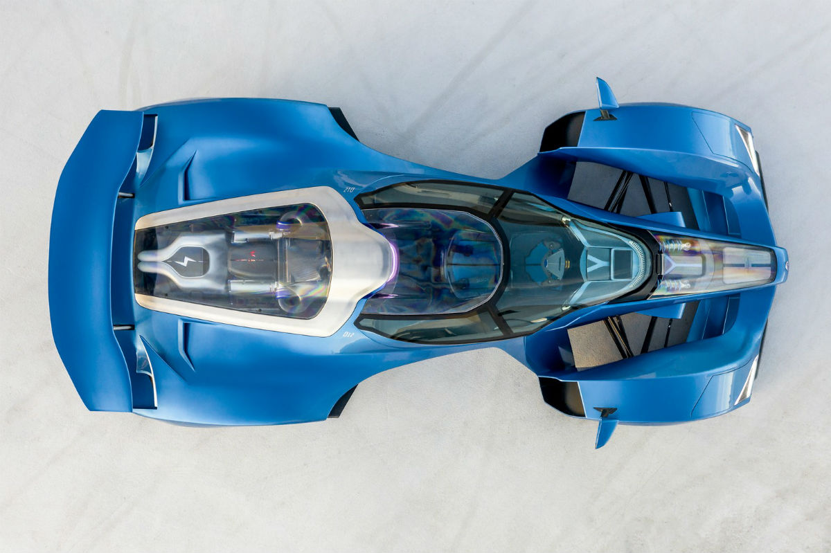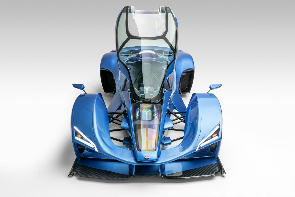 Su diseño es una amalgama que tiene mucho de un Fórmula 1 y también de un caza de combate. El frontal tiene forma de pico y de él parte la carrocería que carena las ruedas delanteras, dejando esta parte separada del cuerpo principal, formado por el puesto de conducción con una cúpula que se abre entera hacia adelante y una zaga ancha, con unas enormes tomas de aire situadas delante de las ruedas traseras, un alerón que se despliega dos salidas de escape situadas a media altura y un prominente difusor trasero.