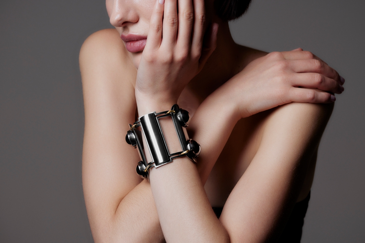 La colección está compuesta por un brazalete, una pareja de anillos, unos gemelos, unos pendientes, un broche y una pulsera. El primero, el brazalete, se inspira en el eslabón de una cadena de distribución. Combina todas las vistas de ese eslabón, creando así una nueva cadena “fuerte y flexible a la vez”.