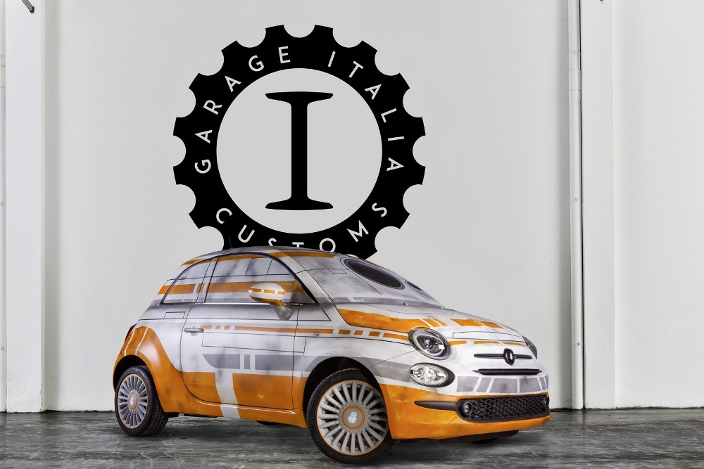 El Fiat 500, que recientemente lo vimos como un Stormtrooper en el Salón de Los Ángeles, sigue enseñándonos sus facultades para el disfraz. En esta ocasión, Garage Italia Customs presenta sus diseños inspirados en R2-D2 y en BB-8. En primer lugar, el Fiat 500 inspirado en R2-D2 presenta un diseño exterior en blanco y azul con cristales polarizados, llantas de aleación de dos tonos y emblemas del famoso robot.