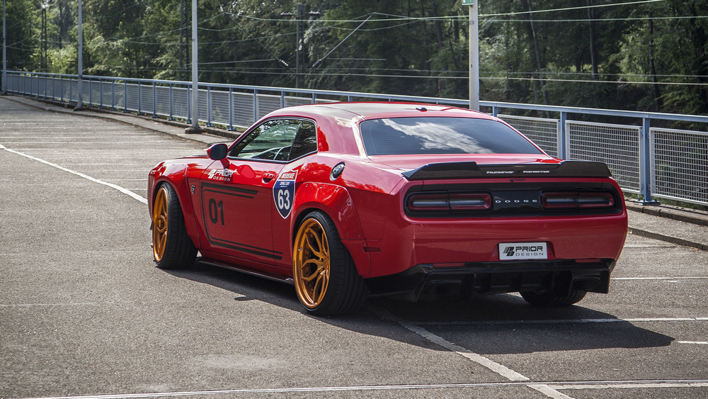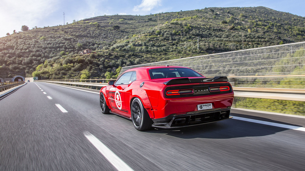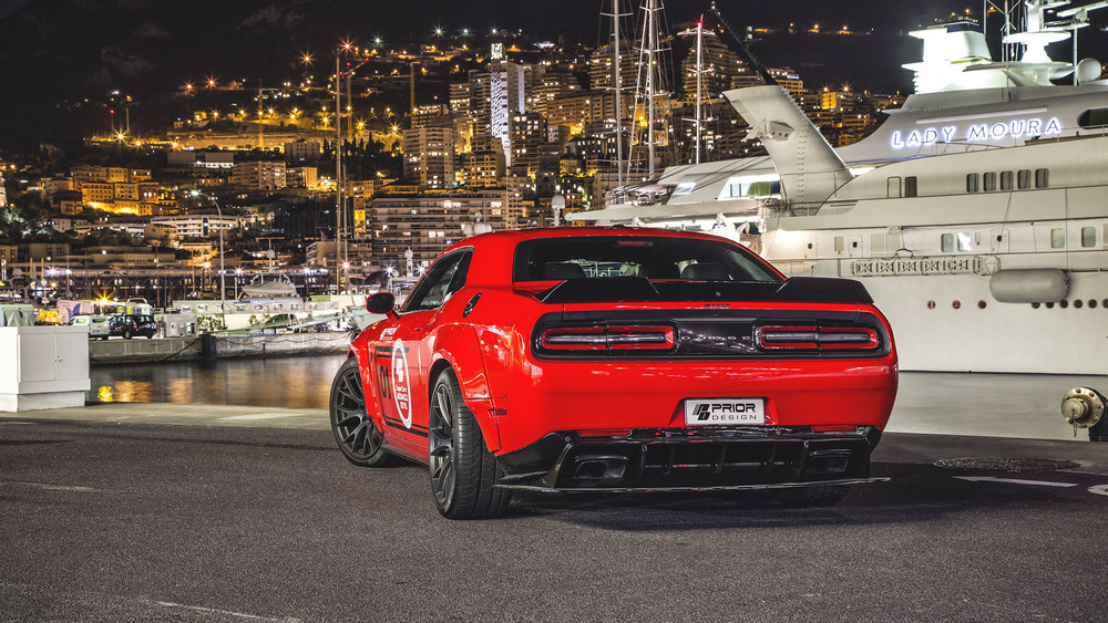 Según indica Prior Design, todos estos componentes del Dodge Challenger Hellcat PD900HC ayudan a “pegar el coche al suelo” a altas velocidades, por lo que además de aportar estética, son funcionales. Las novedades se completan con unas taloneras más marcadas y con un alerón ubicado sobre el portón del maletero. Pero sin lugar a dudas, lo más llamativo de esta preparación del Challenger SRT Hellcat son las nuevas aletas.