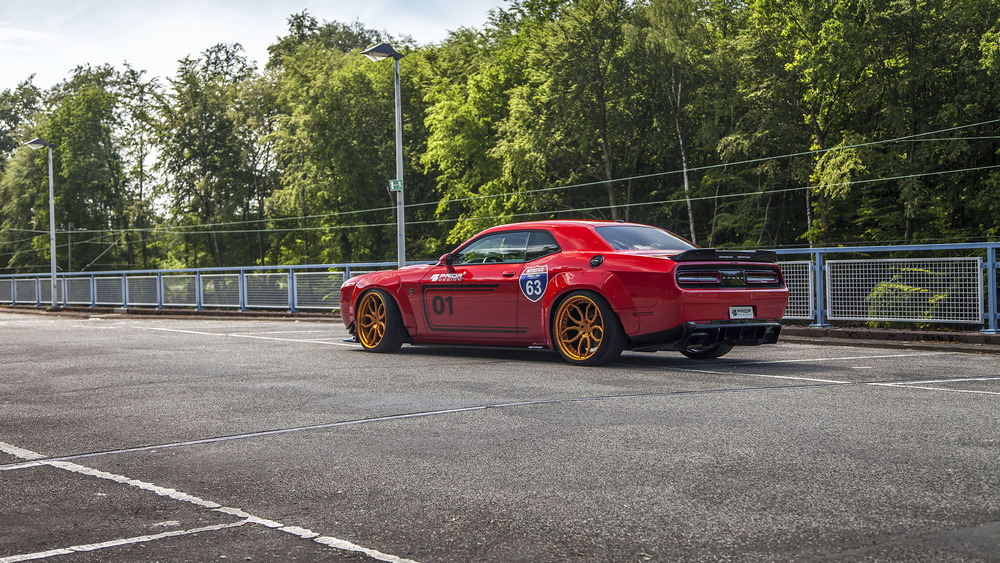 Construido sobre la base del ‘mucle car’ de producción más potente jamás comercializado, el Challenger Hellcat PD900HC estrena multitud de elementos en el exterior. En el frontal, por ejemplo, hay un parachoques completamente rediseñado que cuenta con entradas de aire de mayores dimensiones. Debajo de este se sitúa un faldón rematado en negro brillante que integra en sus extremos unos ‘canards’ mientras que en la zaga, nos encontramos con un colosal difusor.