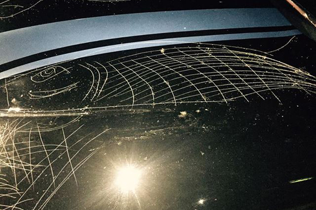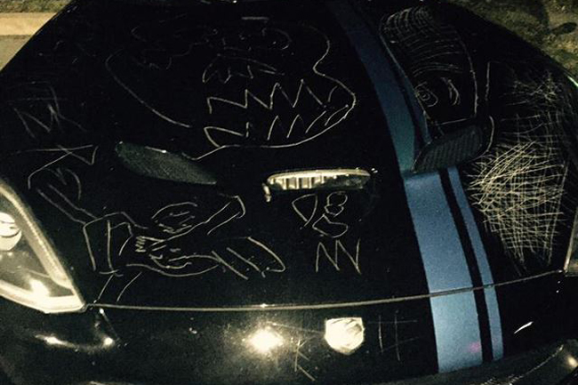 Pongámonos en situación. Dejas tu coche aparcado junto a un hangar de aviones de la Policía mientras trabajas por la noche en otro hangar cercano reparando una aeronave. Cuando terminas tu jornada y sales a la calle, te encuentras con que alguien ha decidido redecorar tu coche con un tratamiento extremo de pintura, a golpe de llave o algún otro elemento punzante. Suma a esto el hecho de que el coche en cuestión no es un automóvil cualquiera (aunque si fuese más común, la acción seguiría siendo igual de detestable), se trata del coche de producción con el motor de combustión interna más grande que se fabrica en la actualidad, el Dodge Viper.
