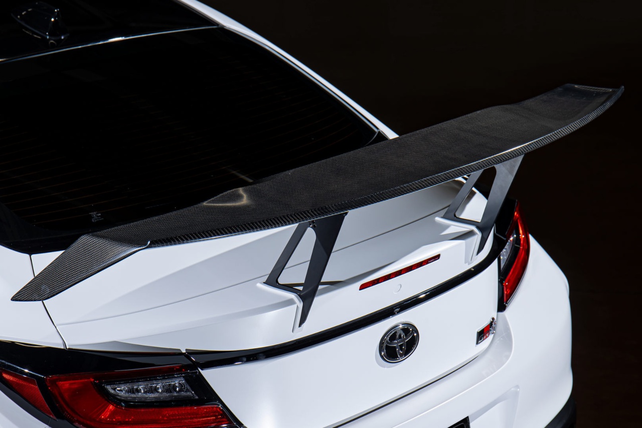 Aunque el primero de ellos, llamado Parts Concept, ya se anunció en junio, hasta ahora no habíamos podido conocerlo en detalle. Y hay que decir que el equipo de piezas de Gazoo Racing ha ido a lucirse, tomando un Toyota GR 86 estándar y modificándolo por extenso, tanto en lo visual como en las prestaciones. Por de pronto, en el frontal encontramos un 'splitter' y varios añadidos en fibra de carbono, incrementando así la carga aerodinámica en esta zona.