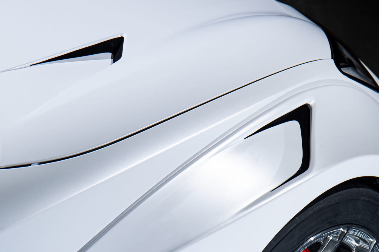 Luego, en el lateral, vemos nuevos faldones. Y ya en la zaga, un vistoso alerón de fibra de carbono, un difusor realizado en el mismo material y un sistema de escape de alto rendimiento, según la firma.