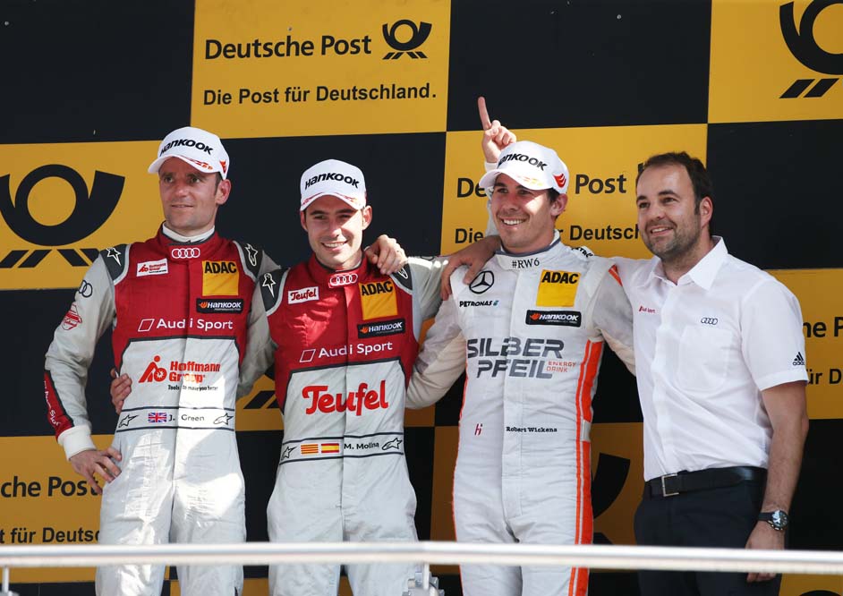 Todas las miradas en el equipo Audi estaban fijadas en Mortara, segundo en la clasificación general; en Jamie Green, con el récord de la pista; y en Ekström, que había pisado el podio en nueve ocasiones. Pero ha sido Miguel Molina el que se ha llevado la victoria en Lausitzring, Alemania, en la quinta prueba del DTM 2016.