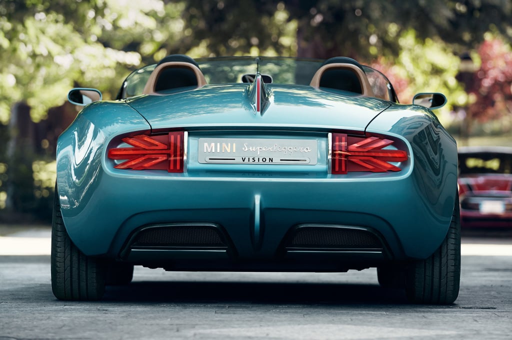 MINI presentó en el Concorso d’Eleganza Villa d’Este 2014 el SuperleggeraTM Vision, un prototipo que une lo contemporáneo y lo atemporal. Ante todo quería dejar claro sus raíces, y por este motivo los pilotos LED estaban diseñados con la bandera de Gran Bretaña, eso sí, dividida en dos –media bandera a cada lado-.