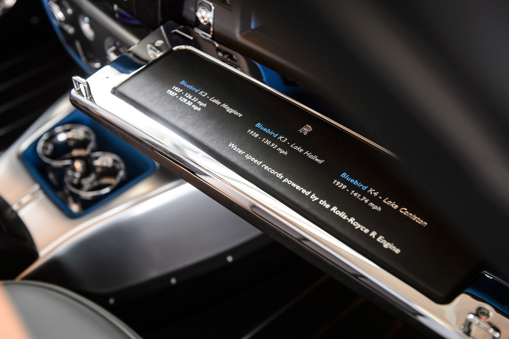Rolls-Royce se ha lanzado y ha introducido en su última creación, el Phantom Drophead Coupé Waterspeed Collection, dos cosas curiosas escondidas en su interior que hacen un guiño a los éxitos conseguidos por Sir Malcolm Campbell, que estableció el récord mundial de velocidad sobre agua en el lago Maggiore, en 1937, con su hidroavión Bluebird K3, que equipaba un motor de aviación R-Type fabricado por Rolls-Royce.