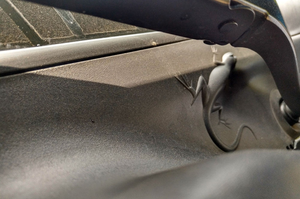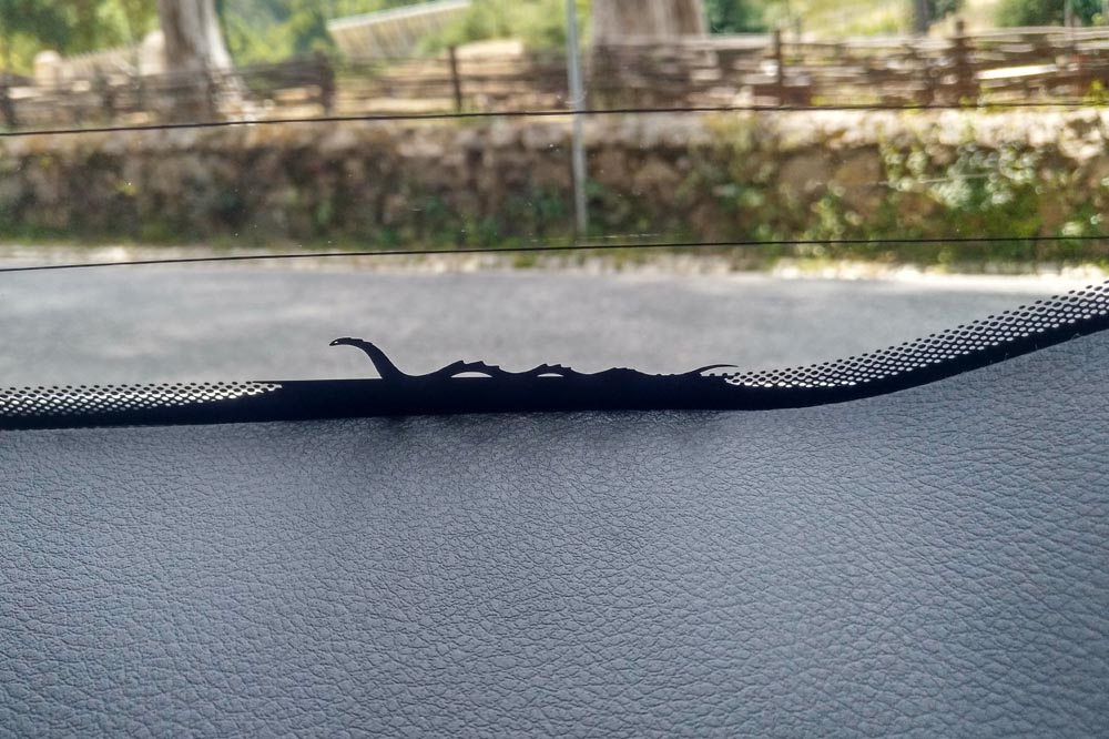 Porque como te decíamos, encontrar estos mensajes ocultos del Jeep Compass 2017 no es fácil: para localizarlos tendrás que realizar un ejercicio de rastreo a lo largo y ancho del interior, maletero y las diferentes guanteras o huecos portaobjetos incluidos. Pero también del exterior, porque es precisamente en esa zona donde nos hemos topado con el detalle que más nos ha sorprendido y la que es sin duda la floritura más trabajada de cuantas tiene este coche, que no es otro que el que aparece en la imagen de portada.