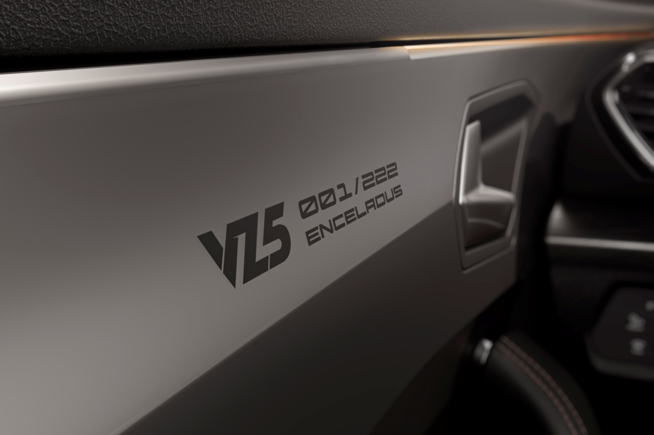 Por otro lado, el Cupra Formentor VZ5 Enceladus incluye las letras y logotipos de Cupra, así como diferentes elementos decorativos del interior, en cromo oscuro. También presenta cubiertas de los retrovisores y salidas de escape en negro y fibra de carbono, llantas de aleación negras de 20 pulgadas (opcionalmente con detalles en cobre), y un interior donde destacan los asientos CUPBucket y el tablero en negro.