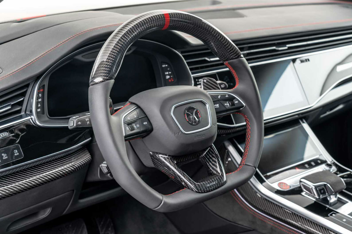 Sin embargo, aunque todo esto es espectacular, el punto más destacado es su motor. La versión más potente del Audi Q8 sale de la línea de producción con un bloque 4.0 V8 biturbo que desarrolla 600 CV y 800 Nm, pero Mansory hay llevado a cabo diversas modificaciones, tales como una reprogramación de la ECU o un nuevo sistema de escape, para llevarlo hasta los 769 CV y los 1.000 Nm de par máximo.