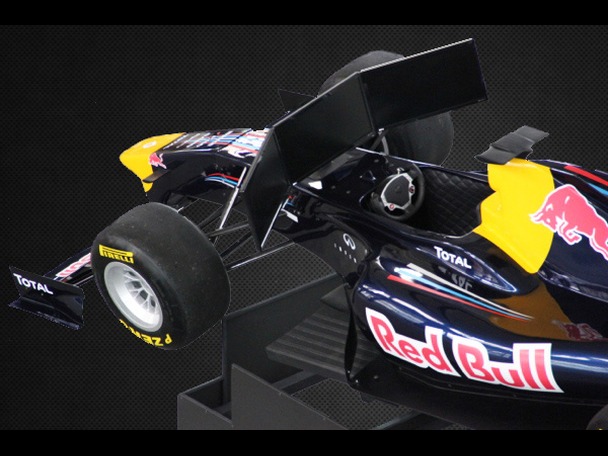Este simulador de Fórmula 1 incorpora tres pantallas para lograr una visión panorámica, un equipo de sonido envolvente y un sistema de mandos desarrollado por Logitech. Bajo la detallada carrocería de fibra de vidrio encontramos una plataforma movida por sendos conjuntos neumáticos capaz de recrear hasta 1,62 g en aceleración, frenada y paso por curva.