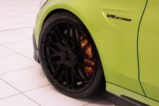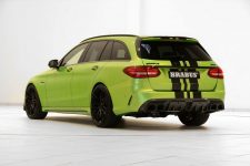 El Mercedes Clase C Estate preparado por Brabus es de todo menos discreto, especialmente en este color verde tan llamativo que ha hecho que desde la compañía se refieran a él como ‘Green Hell’. Su carrocería equipa multitud de elementos específicos para la ocasión, como el faldón delantero, la parrilla, las taloneras, las llantas de aleación, las carcasas de los retrovisores, el difusor trasero o las salidas de escape. Todos estos componentes, muchos de los cuales están fabricados con fibra de carbono, hacen que su imagen sea todavía más deportiva y agresiva.