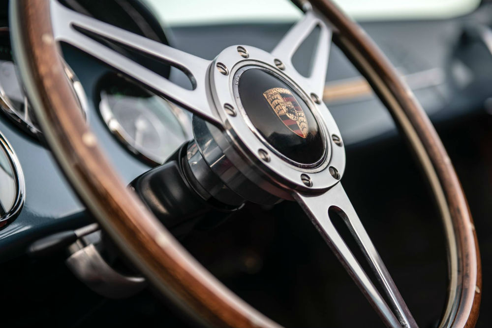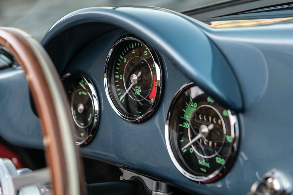 El Porsche 356 Speedster ‘Transitional’ también cuenta con trabajo, importante además, en su apartado mecánico. Su motor original, un bloque de 1,6 litros, se ha reemplazado por un 2.4 tetracilíndrico con 205 CV de potencia; y la suspensión trasera se ha modificado por completo, con amortiguadores firmados por Koni y barras estabilizadoras. Esto, sumado a un peso en seco de apenas 839 kilos, asegura un buen comportamiento y unas prestaciones que presumimos bastante decentes, aunque no se han confirmado.