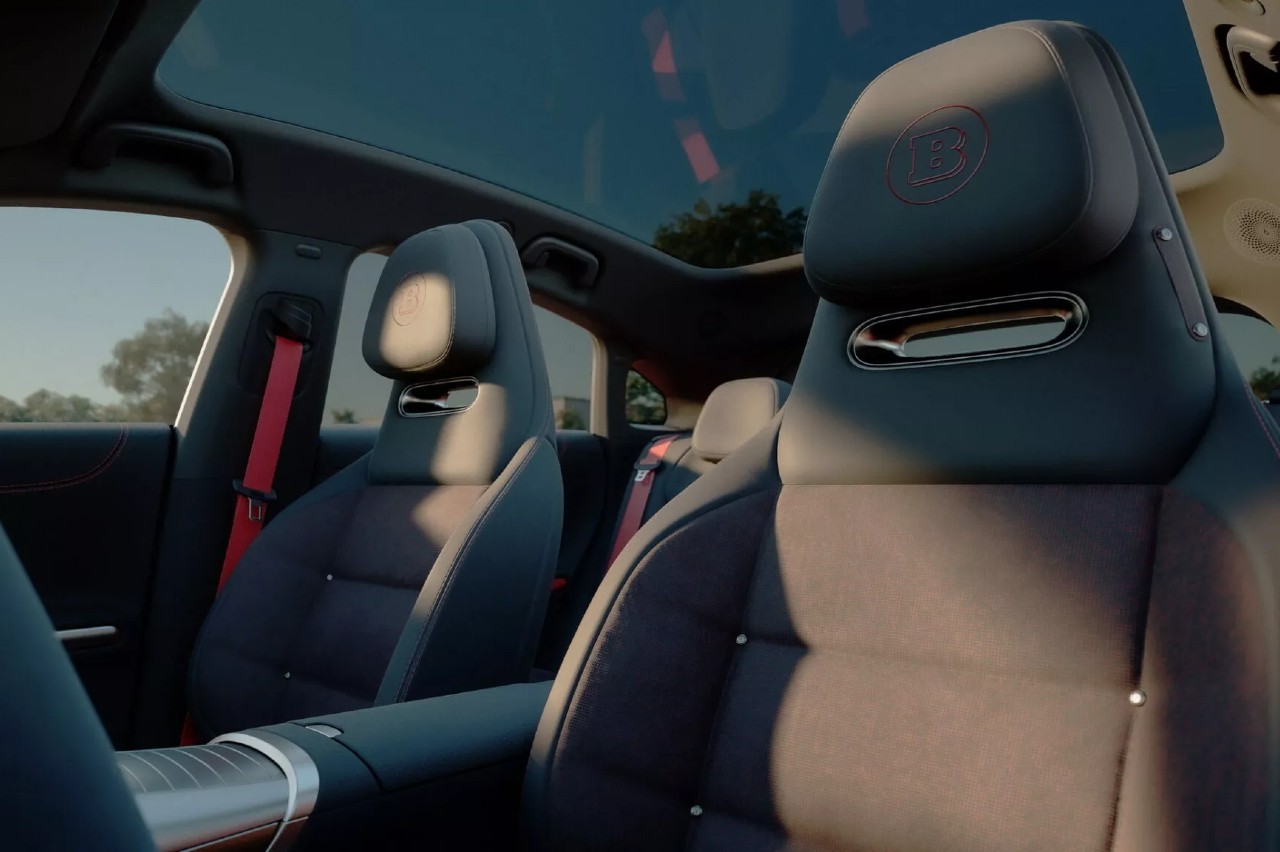 La superior es la firmada por BRABUS, que tiene tracción integral, dos motores, una potencia de 315 kW (428 CV), un par máximo de 543 Nm, acelera de 0 a 100 km/h en 3,7 segundos y tiene la misma punta. También comparte batería, pero por su mayor rendimiento el alcance disminuye hasta 415 km.