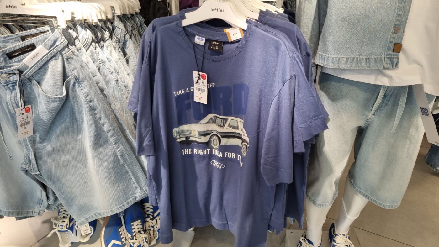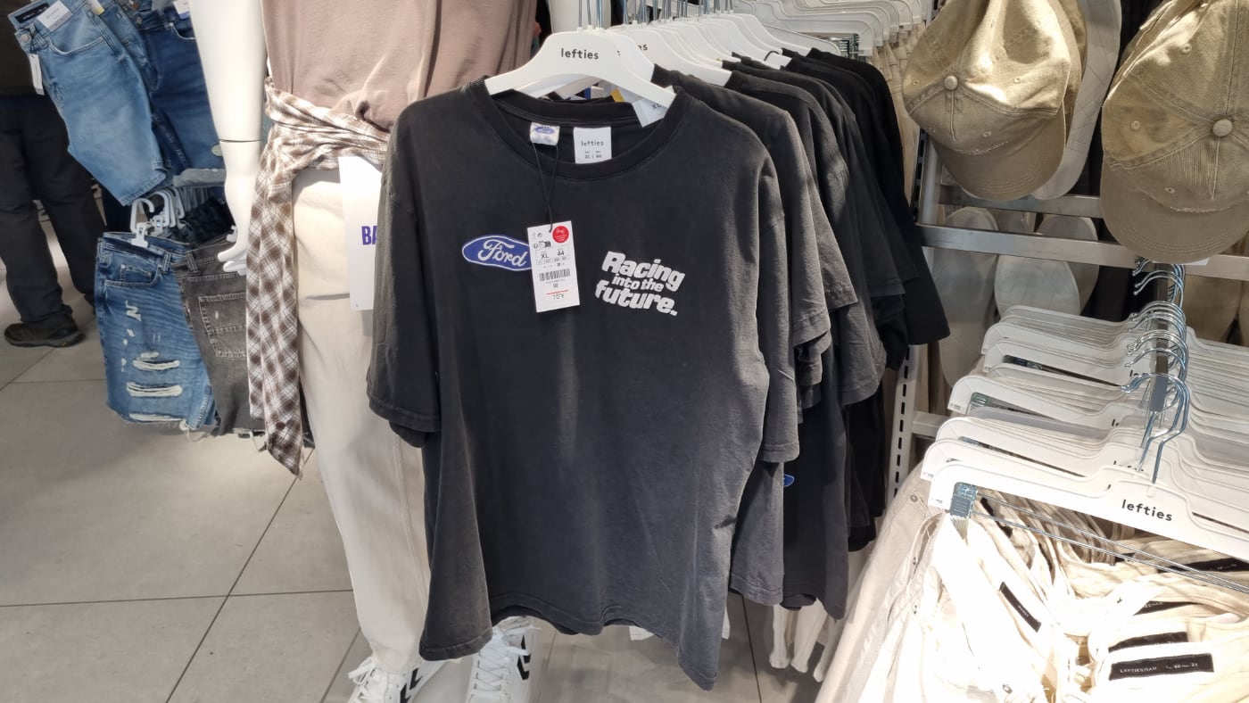 nditex, la gran empresa de Amancio Ortega, ha lanzado en sus tiendas Pull & Bear, Lefties y Zara una serie de ropa para amantes de los coches. Todo son productos oficiales gracias a la colaboración con marcas como Ford, Honda, Chevrolet o Goodyear, entre otras.
