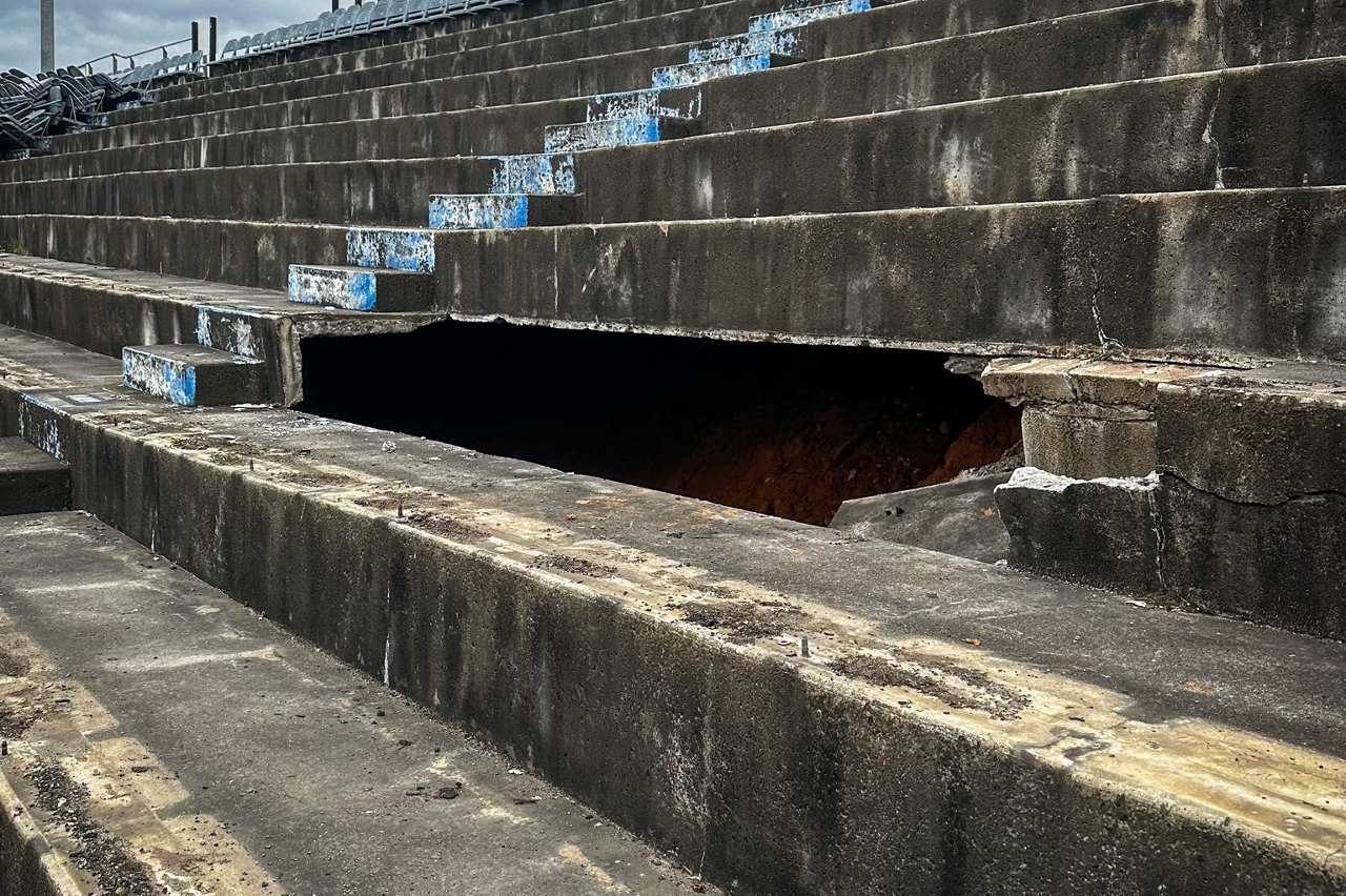 BREAKING NEWS | Sinkhole unearths rumored moonshine cave underneath front stretch grandstands.