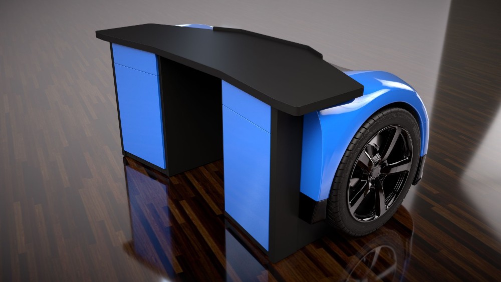 Si siempre has soñado con tener el poderoso Bugatti Veyron, ahora puedes tener uno aparcado en el despacho o en la oficina. O al menos parte de él, porque este escritorio conlleva el frontal del Veyron, con el tren delantero incluido. La fiel recreación está fabricada en fibra de vidrio y madera y puede convertirse en el complemento perfecto para tu centro de juegos, acompañado de una consola, una televisión enorme, el volante y un asiento tipo baquet.