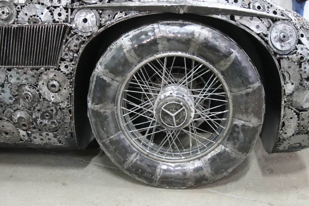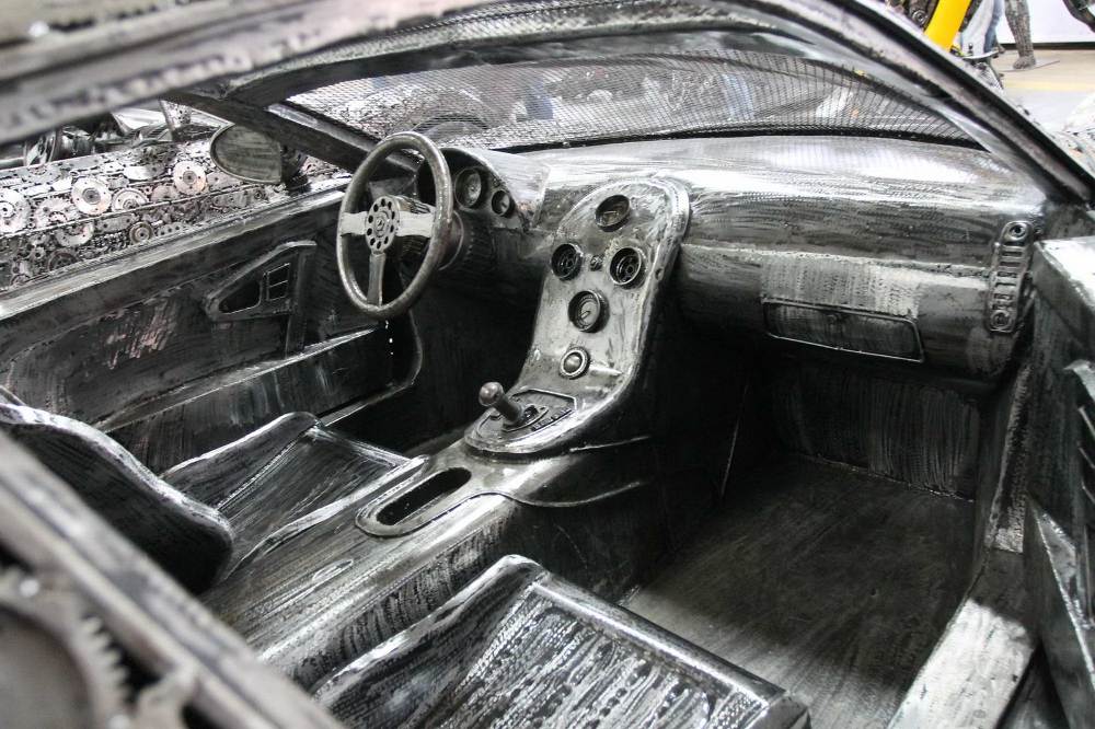 Los cincuenta artistas provenientes de todos los rincones del mundo se abastecieron de todas las piezas que, para cualquiera solo sería basura, y comenzaron a trabajar en estas réplicas de los iconos del automóvil. El resultado es un Mercedes 300 SL Gullwing, un Bugatti Veyron, un Lamborghini Aventador, un Fiat 500 y un Maserati GranTurismo, además de una moto.