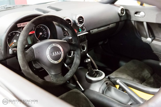 Y entonces, ¿cómo lo hicieron? Pues de una de las maneras más complicadas posibles, pero sin duda, la mejor opción. Tomaron directamente la base del chasis del RS4 B5, lo recortaron 17 centímetros, y lo acoplaron bajo la carrocería del TT de primera generación. Todos los elementos, como los brazos de la suspensión, los frenos, la transmisión, el diferencial trasero y por supuesto, el motor, son los mismos que podemos encontrar en la versión más deportiva del sedán con carrocería familiar -incluso las llantas de aleación son las mismas-.