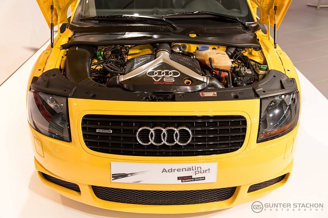 Pero como os imaginaréis, una ‘operación de trasplante’ de semejante envergadura no es tarea fácil. Los creadores del TT 2.7 V6 tuvieron que enfrentarse a una serie de problemas que principalmente estaban causados por la disposición de la mecánica del modelo de producción. Como comparte plataforma con un compacto, el propulsor estaba colocado en posición delantera transversal y de esta forma, el 2.7 V6 no cabía en el vano motor.