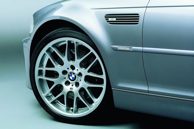 En cuanto al resto de modificaciones, disponía de unos muelles recortados en el eje delantero y de nuevos reglajes para la amortiguación acordes al menor peso del coche. Los brazos de la suspensión trasera se sustituyeron por unos de aluminio más ligeros y llevaba rótulas en lugar de casquillos, lo que permitía que la geometría de la rueda no variara ante fuertes cargas. La dirección pasó de tener una relación de 15,4:1 a 14,5:1 –más directa- y montaba unos neumáticos casi de competición, desarrollados por Michelin específicamente para este modelo. De hecho, eran tan radicales que BMW desaconsejaba utilizarlos con lluvia. En caso de que fuese inevitable –si vives en una zona donde llueve habitualmente, por ejemplo-, podías pedirlo con los neumáticos del M3 convencional.