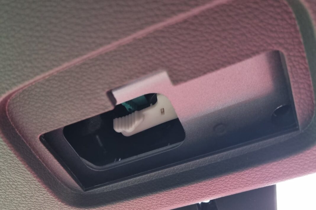 En otro, simplemente hay una ranura. Pues bien, introduciendo el cinturón de seguridad en ella, como puedes ver en este vídeo, el portón se abre de forma instantánea.