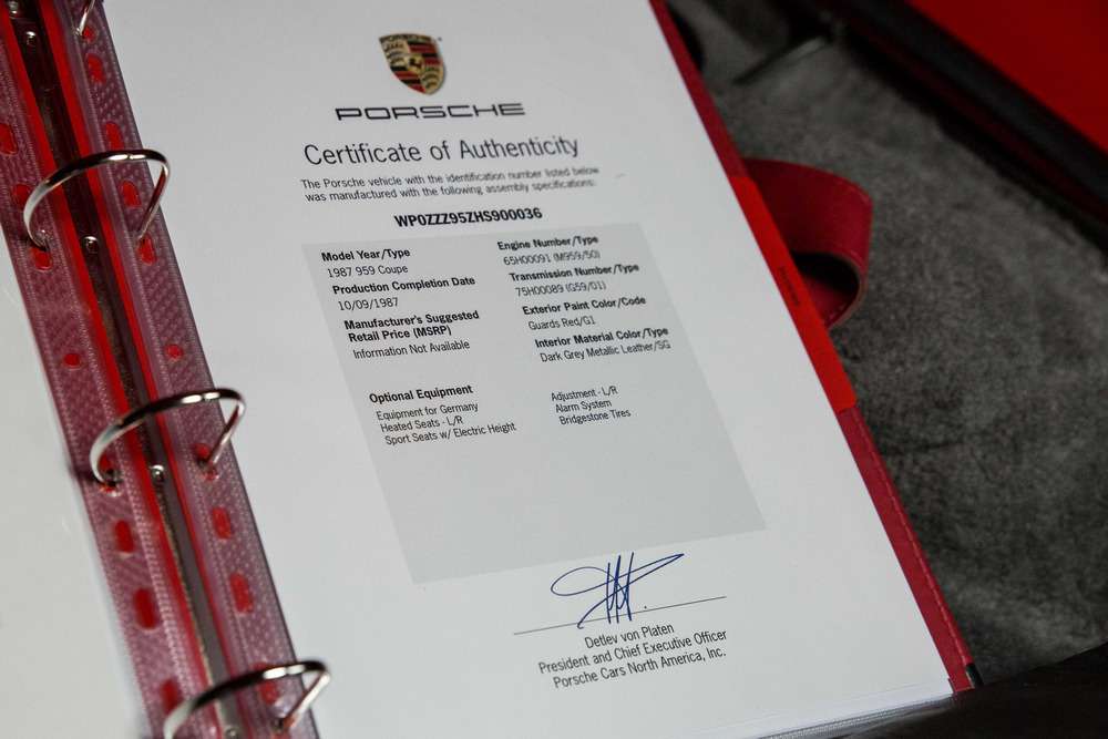 Desde entonces, este 959 que será subastado este mes ha tenido otros propietarios, pero cuenta con un completo historial de mantenimiento que demuestra que todos ellos se ha preocupado de mantener esta ‘joya’ en perfecto orden de marcha. Además, el comprador también recibirá dos certificados de autenticidad (de Porsche US y Porsche UK), los manuales y libros originales, las herramientas o todas las llaves.