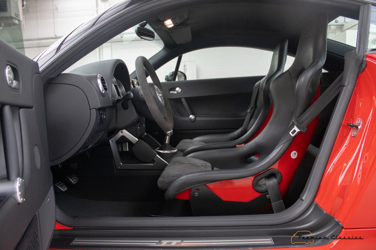 Su peso también era 75 kilogramos más ligero que el del TT 1.8T quattro en el que se basaba. Una reducción que se logró eliminando las dos plazas traseras, el sistema de aire acondicionado (que se podía montar en opción sin sobreprecio) o añadiendo unos atractivos baquets firmados por Recaro.