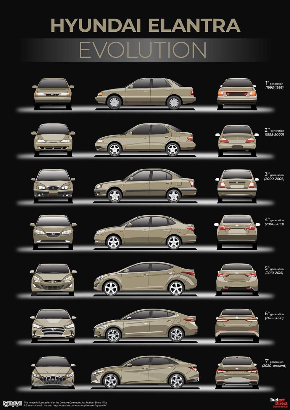 Hyundai lanzó la primera generación del Elantra hace tres décadas, impulsado por un motor de origen Mitsubishi. El mayor cambio vino con la quinta generación del modelo, con un diseño más curvado. Tendencia que ha ido creciendo con el paso de los años hasta la llegada del último, presentado recientemente y con una parrilla frontal enorme.