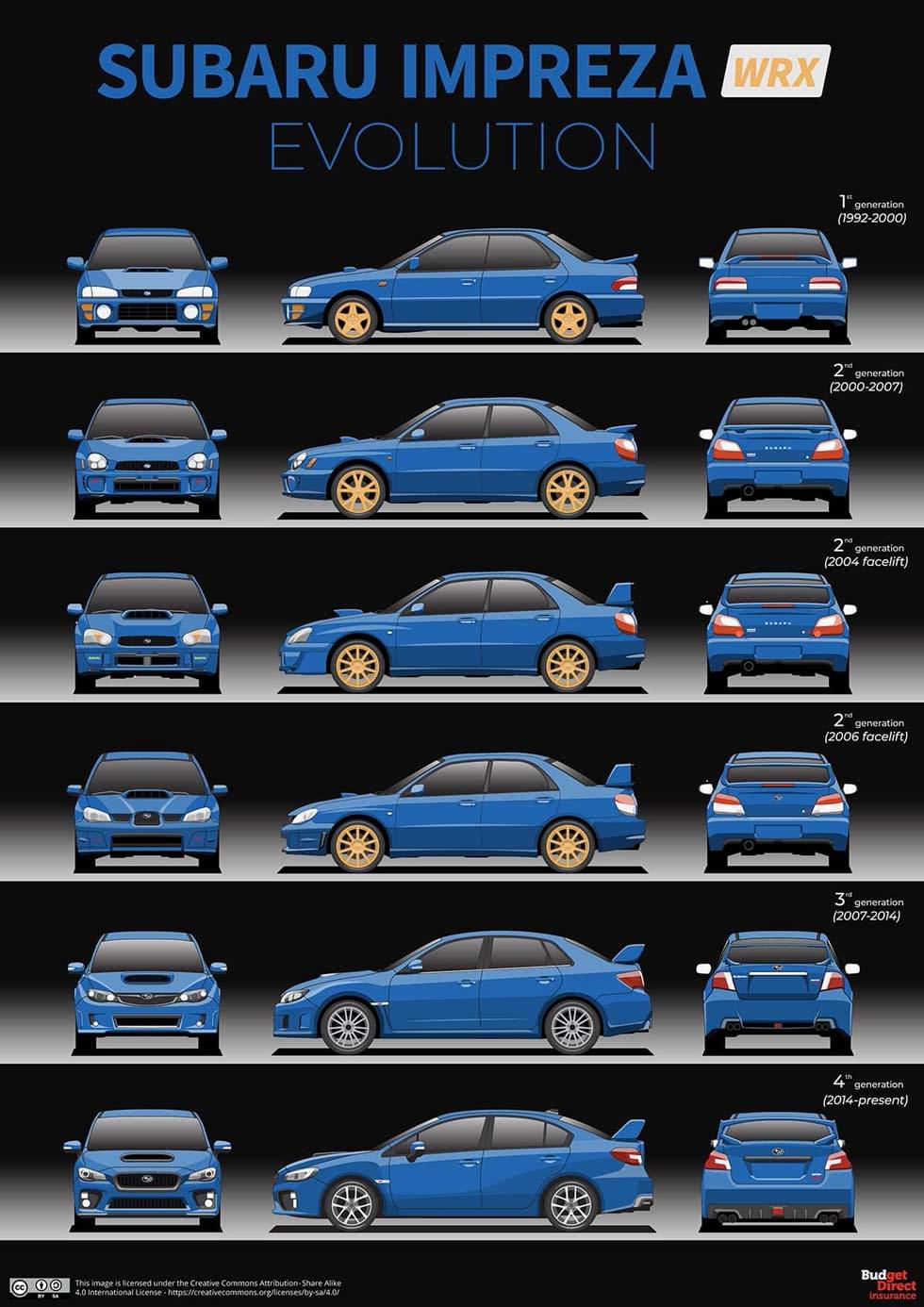 Si hablamos de berlinas deportivas, esta de Subaru, el Impreza (cuya última generación fue simplemente WRX STI), es una de las más famosas. Cuenta con una gran tradición en rally y existe desde principios de los '90. La segunda entrega cambió demasiado un frontal que acabó volviendo a los faros alargados horizontalmente en detrimento de los redondos.