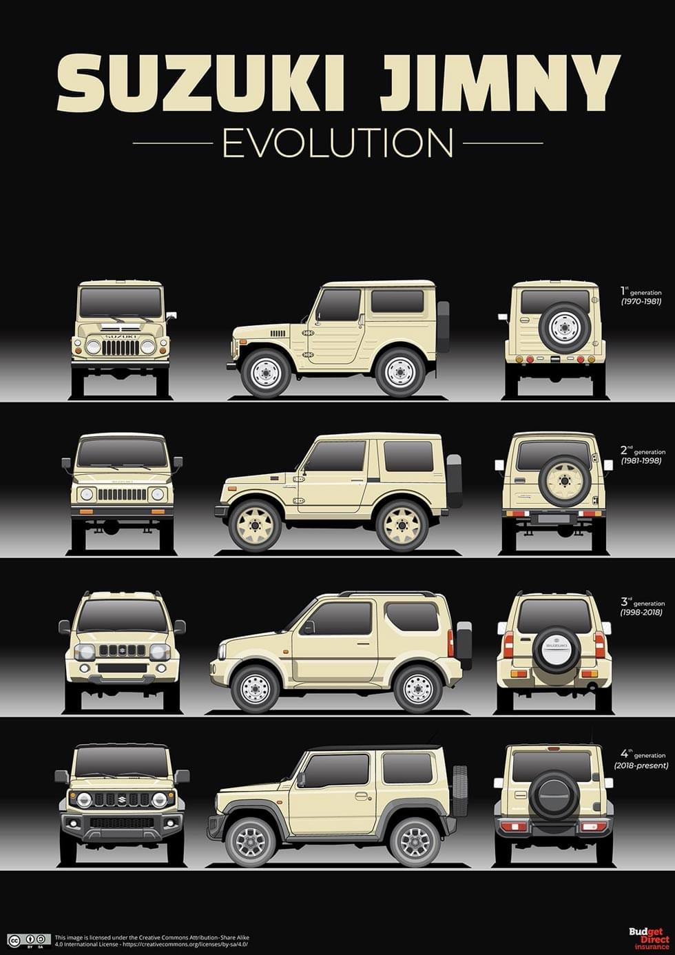 Suzuki ha creado un auténtico todoterreno barato y solvente, culminando en una cuarta generación que llegó al mercado hace ahora un par de años. El primero se basó en un HopeStar On360, ya que Suzuki compró Hope en 1968. Claramente, este coche se inspiró estéticamente en el Jeep Willys, con un frontal recto, faros redondos y una parrilla con lamas verticales.