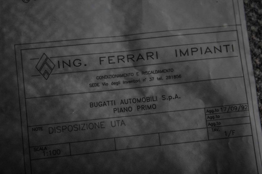 Desde que la fábrica de Bugatti fue abandonada en 1992, Ezio Pavesi hace las funciones de guarda y mantenimiento de la propiedad. Ahora pertenece a un bufete de abogados de Roma, quien la adquirió en una subasta hace cuatro años y, desde entonces, varios inversores chinos del sector de la automoción han mostrado su interés en la fábrica. La estructura que una vez fue el lugar que estrenó el uso del chasis de fibra de carbono en la industria automotriz, ahora deja una impresión desoladora.