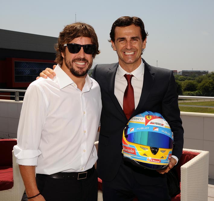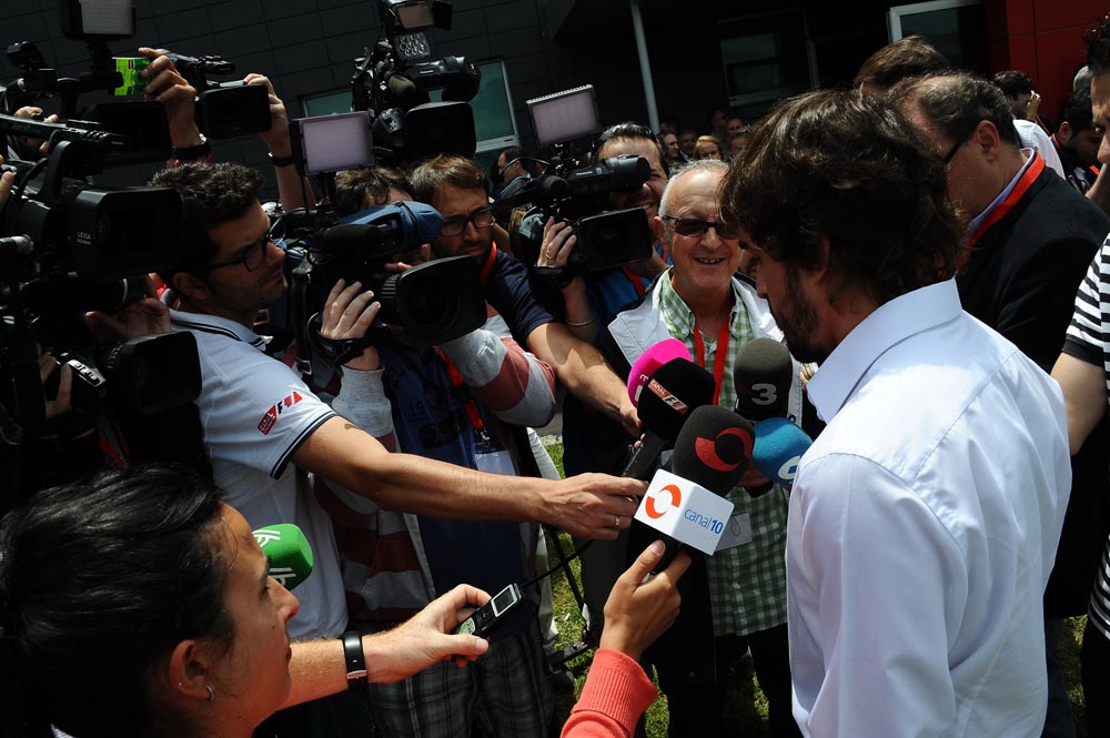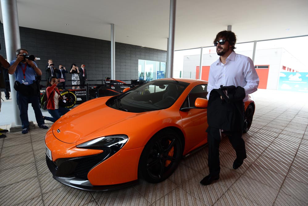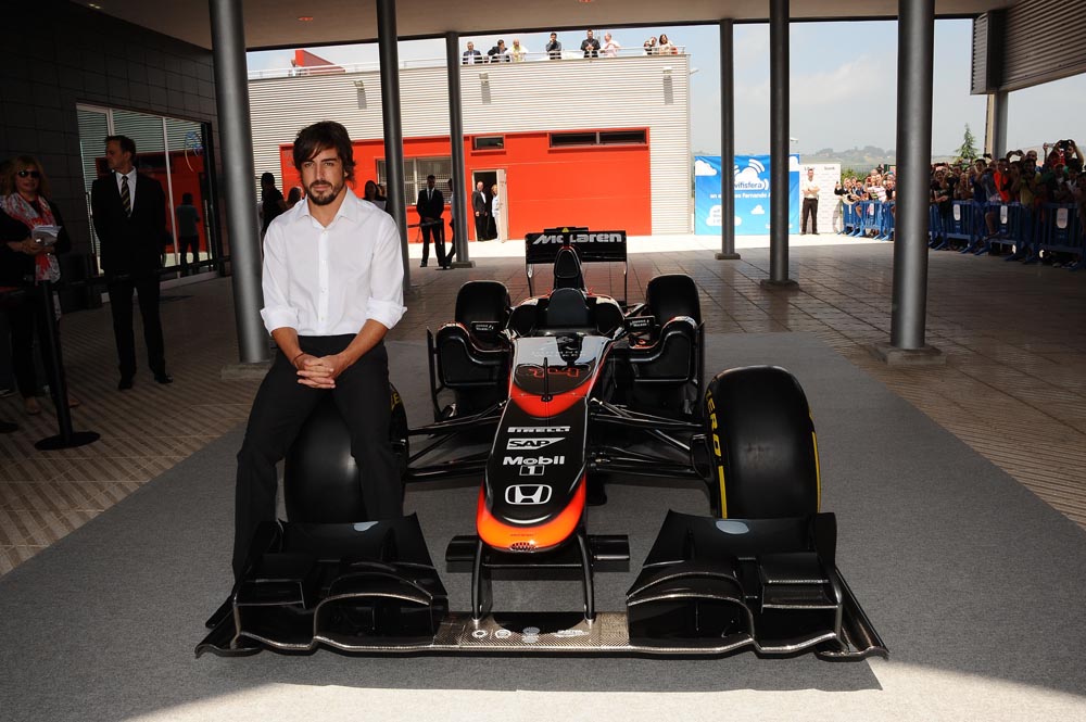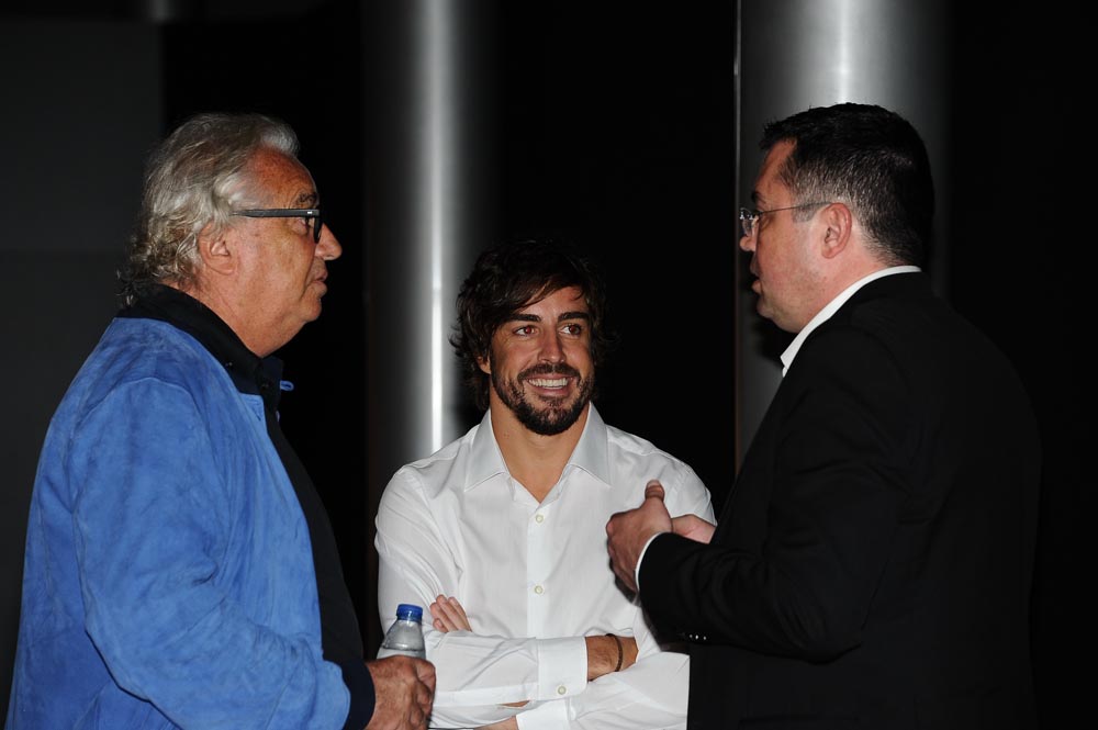 El actual piloto español ha estado acompañado por el director deportivo de McLaren, Eric Boullier; Flavio Briatore, exdirector de la escudería Renault; Pedro Martínez de la Rosa, el presidente del Principado en funciones, Javier Fernández y la directora del Consejo Superior de Deportes, Ana Muñoz, entre otros.