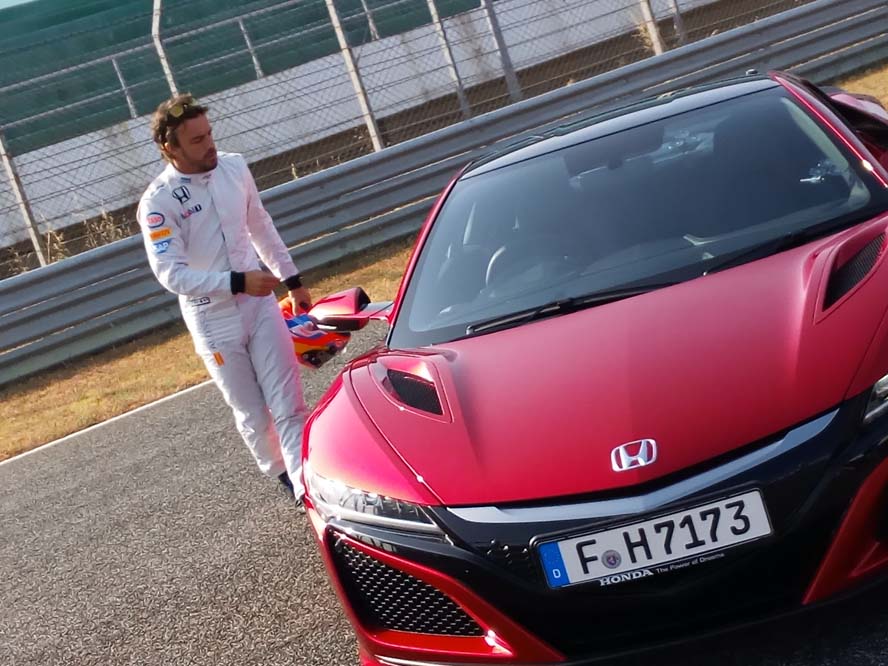 En enero del año pasado, Fernando manifestó su amor por Lara Álvarez el Honda NSX en un tuit. “Todavía no lo sabes, pero algún día estaremos juntos”, tuiteó el asturiano. Hoy, más de un año después, ha declarado sobre el vehículo en el evento: "Lo que más me ha sorprendido ha sido la frenada, la capacidad de los frenos y las sensaciones como piloto no distan mucho de lo que sentimos en F1, aunque se trata de conducciones muy diferentes”.