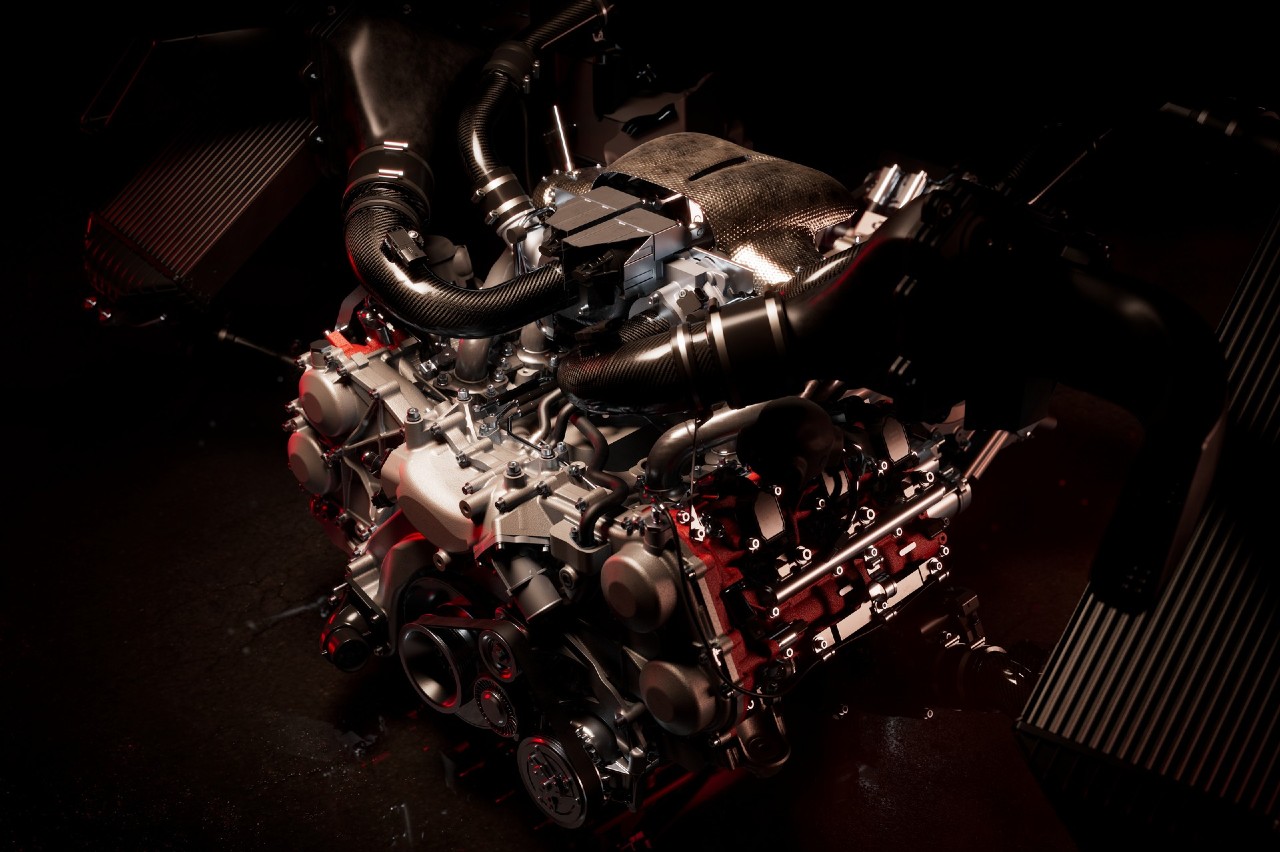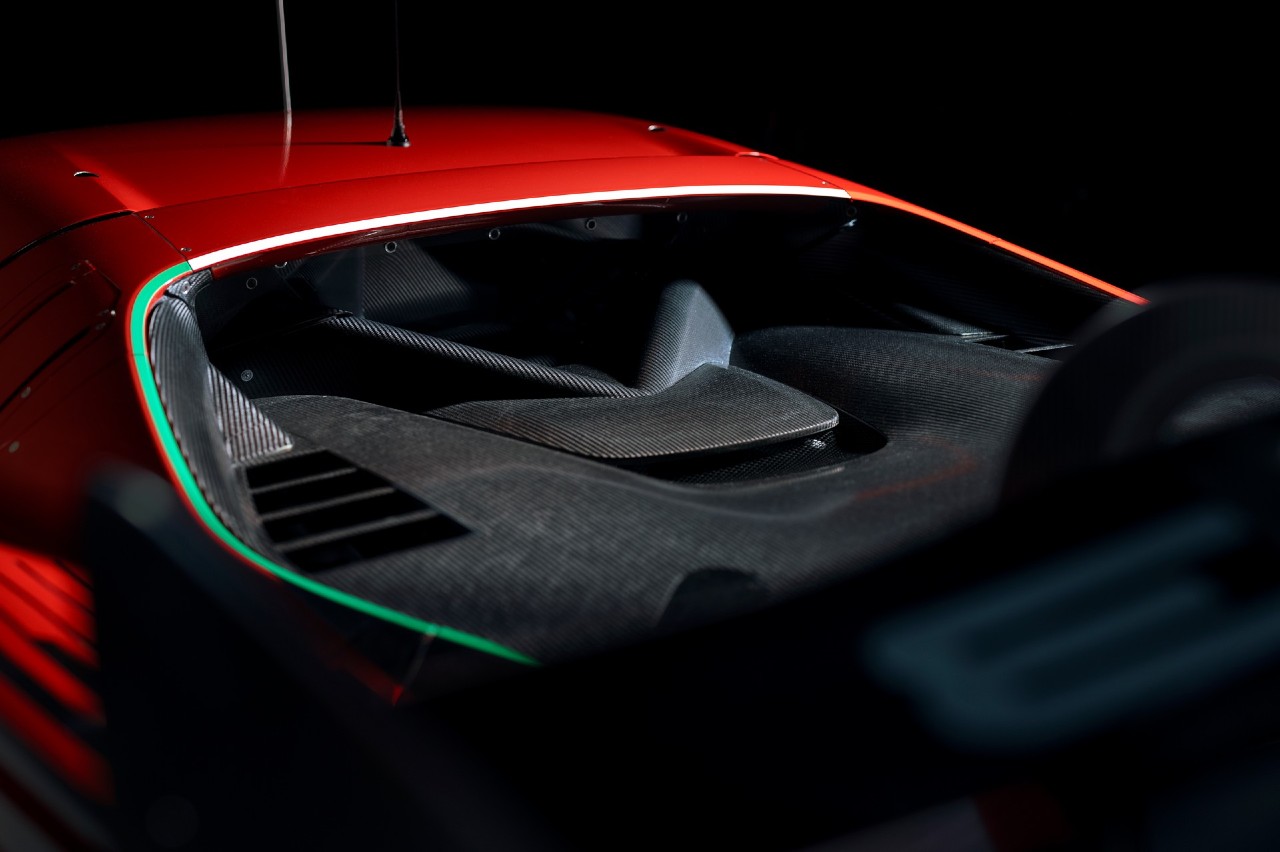 Se ha confirmado que monta un motor V6 biturbo, de 3 litros y con una ‘V’ a 120 grados, situado en la parte central trasera. Al contrario que el modelo de calle no tendrá hibridación y tampoco se ha dado a conocer cuál será su potencia concreta, aunque rondará los 600 CV y los 710 Nm de par máximo.
