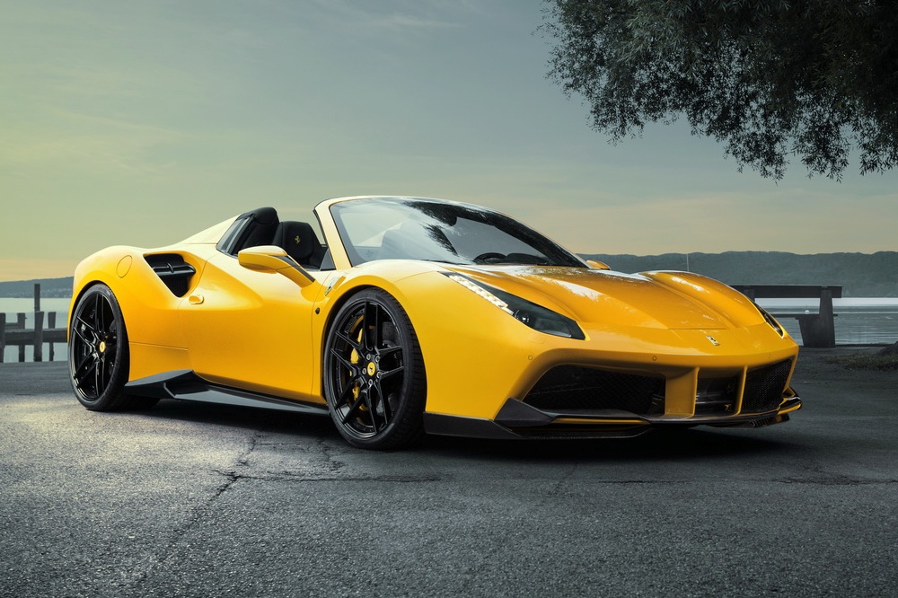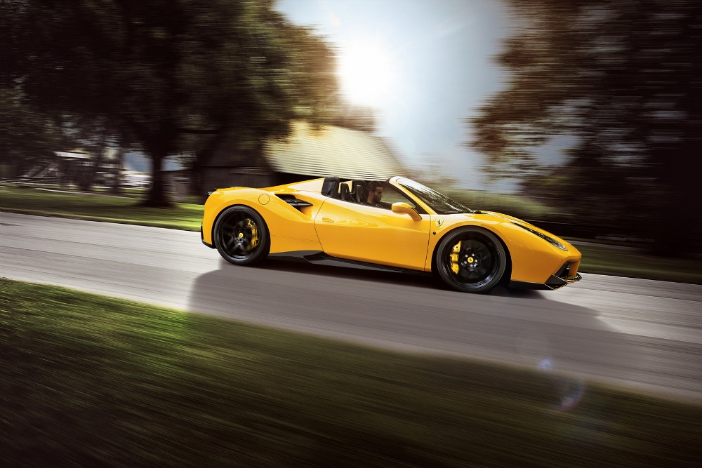 Pero comencemos por el kit de carrocería diseñado por Novitec Rosso específicamente para el Ferrari 488 Spider. Éste ha sido probado en el túnel de viento e incluye un splitter frontal, taloneras, un spoiler y un difusor traseros. Varios componentes de fibra de carbono completan el kit y un set de llantas de 21 pulgadas forjadas se unen a un sistema de suspensión hidráulica que rematan el conjunto.