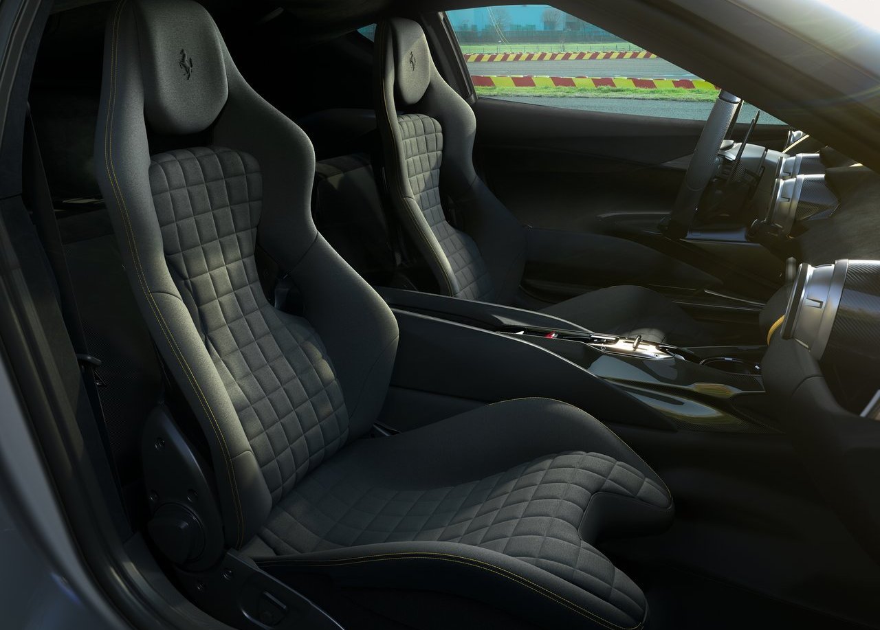 El nuevo Ferrari 812 Competizione A cuenta con un techo de tipo targa completamente de fibra de carbono para mantener a raya el peso. Una vez descapotado, el techo se almacena en un compartimento debajo de la luneta posterior. Mientras tanto, el 812 Competizione integra un techo de aluminio con elementos de carbono en la parte posterior que reemplazan al cristal alargado del Superfast estándar.