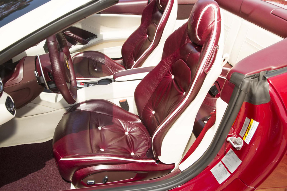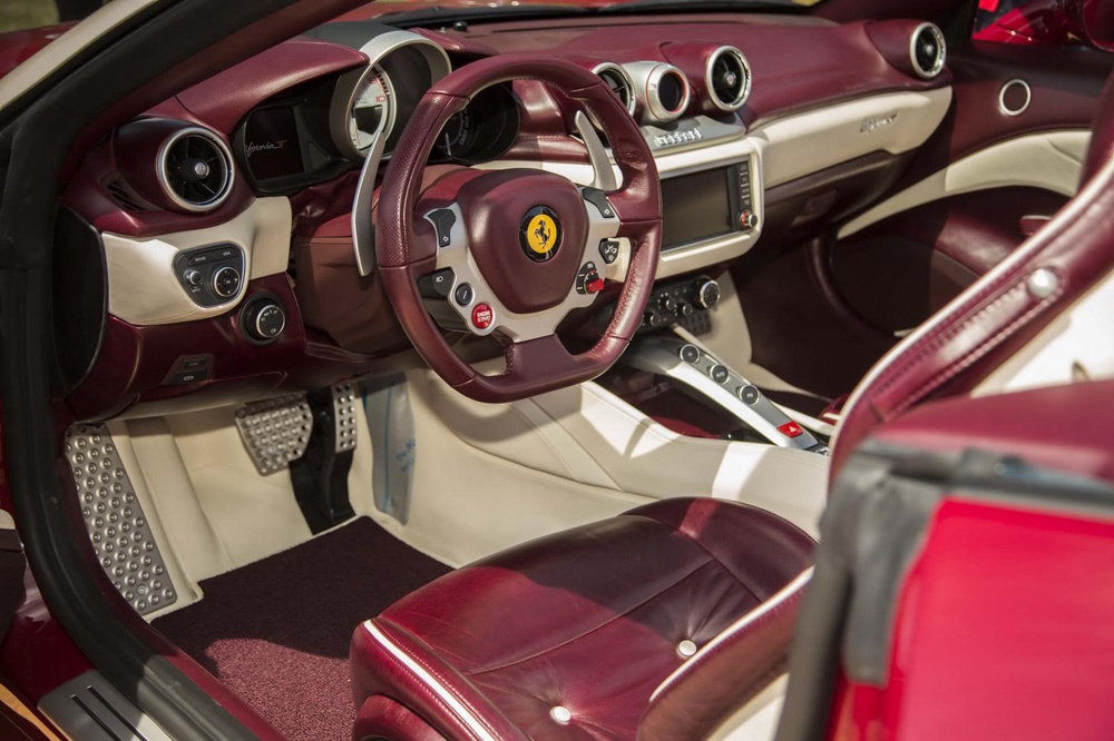 Esa elección de colores contrasta con la abundancia de cromados, presentes en la parrilla delantera y en las llantas de aleación de 20 pulgadas de diámetro. Pero lo más sorprendente de este Ferrari California T Tailor Made y lo que verdaderamente hace que sea único está en su habitáculo, donde nos encontramos con una tapicería de cuero de color burdeos que es un claro guiño a los icónicos asientos Dezza de Giò Ponti y que está adornada con detalles en color marfil.