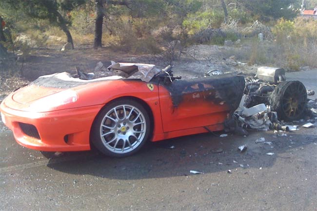 Los hechos ocurrieron sobre las seis de la tarde, cuando el coche italiano que estrenaba hoy mismo el centrocampista empezó a arder en la última curva del camino que da acceso a de la Ciudad Deportiva del Valencia. Según ha informado el gabinete de prensa del club, el internacional argentino vio por el retrovisor que salía humo y alguna llama de la parte posterior del automóvil, por lo que se detuvo y lo abandonó para dirigirse a las oficinas del Valencia y avisar del incidente. Según las mismas fuentes, el incendio se produjo espontáneamente y sin que hubiese un accidente. Por suerte, Ever Banega salió ileso del Ferrari. (Todas las fotos)