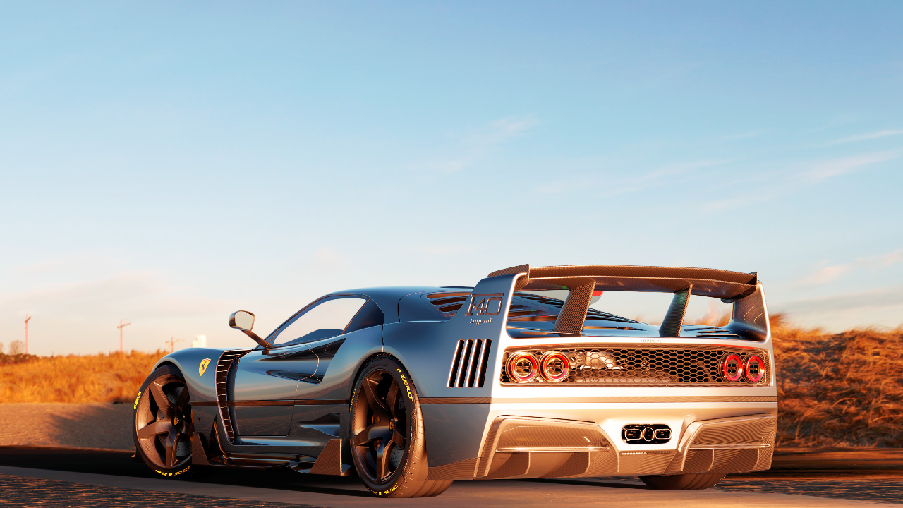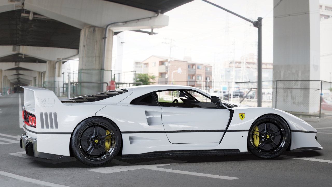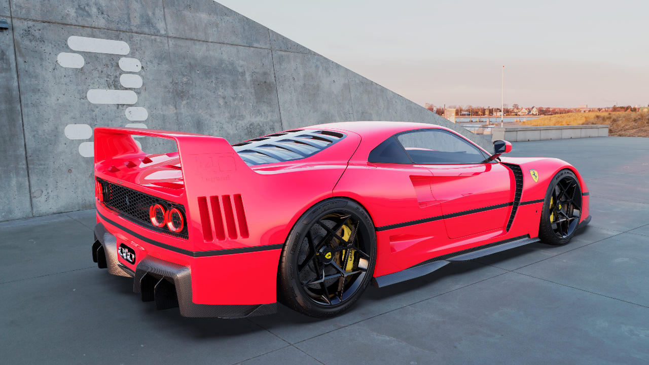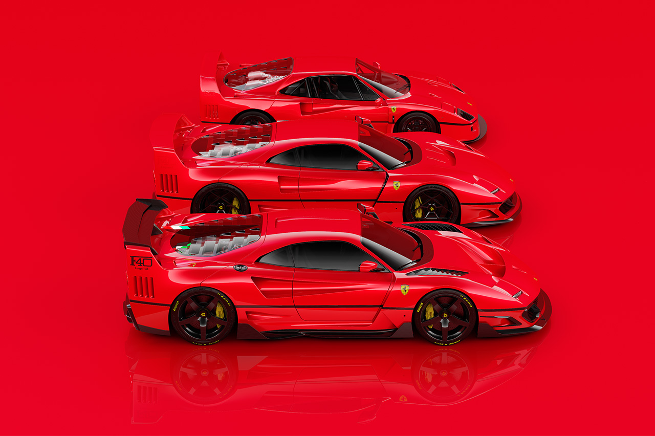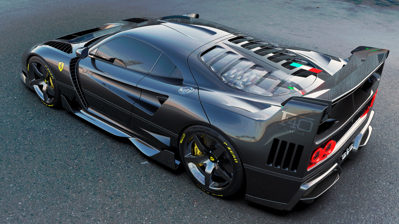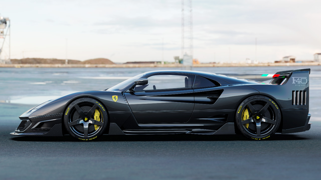 El diseñador español ha llevado a cabo un ejercicio de diseño rápido sobre la base del F40. De este modo, ha tratado de implementar todas estas características de los superdeportivos modernos en el diseño del icono de Ferrari. Así, la distancia entre ejes ha aumentado hasta los 4.650 mm y se han instalado llantas de 21 pulgadas. También ha mejorado la calidad superficial del modelo, dándole un tratamiento moderno.