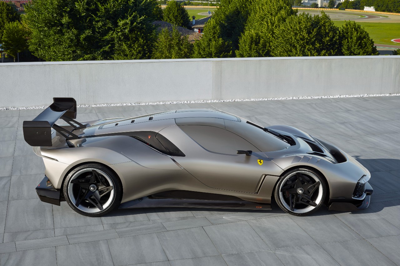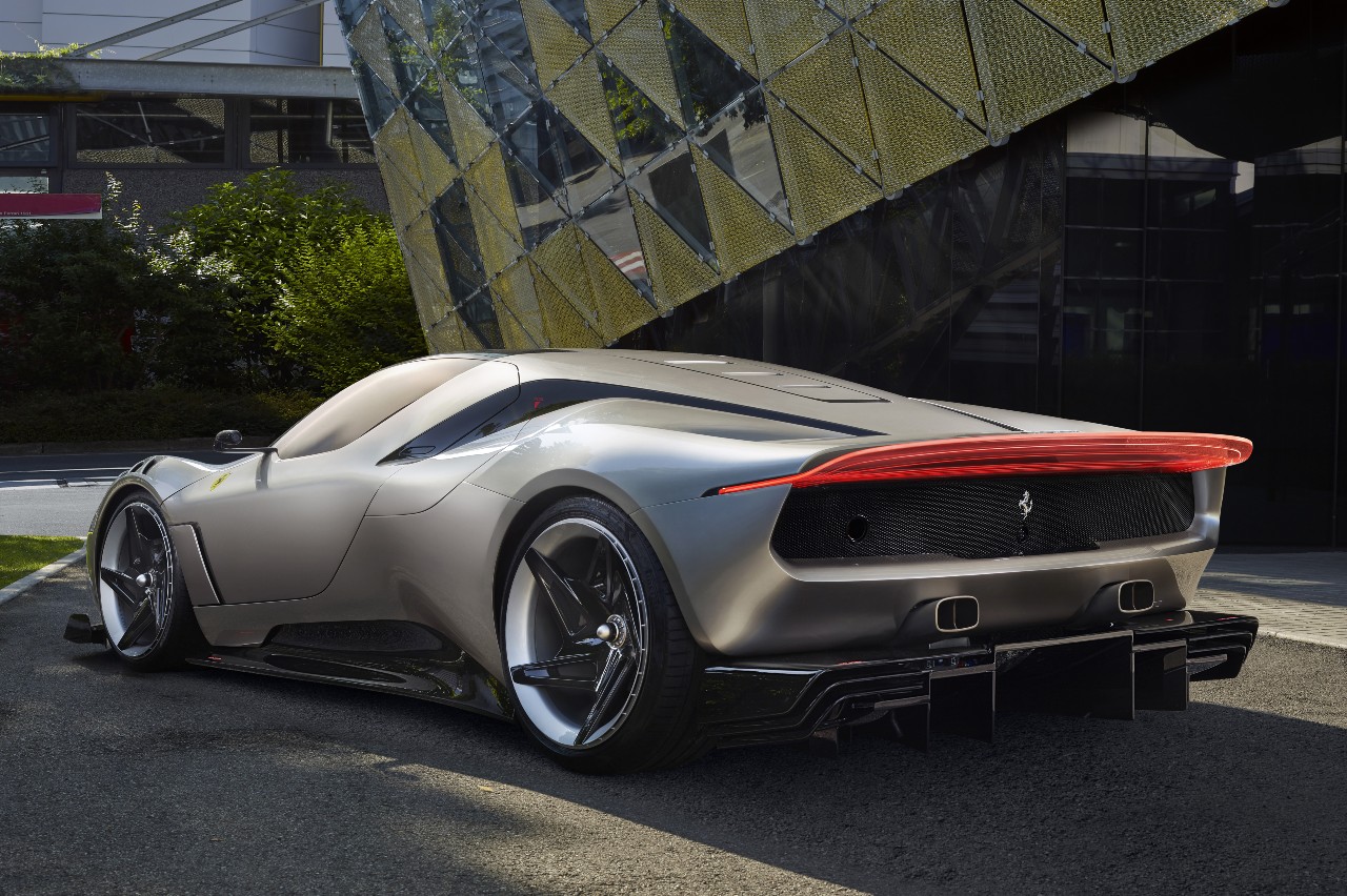 Diseñado y creado bajo la dirección de Flavio Manzoni en Centro Stile, no es un coche homologado para calle, sino para un uso no competitivo en pista, ya que toma como base al Ferrari 488 GT3 Evo 2020, el coche con el que Ferrari compite en la categoría GT3. Su principal peculiaridad reside en su configuración dual: luce unas formas puras y elegantes, pero cuando sale a pista, revela unas tomas de aire salientes de apertura automática y un imponente alerón trasero que quita el aliento.