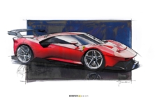 El parabrisas inclinado, los marcados pasos de rueda delanteros y los afilados espejos retrovisores inspirados en los monoplazas de Fórmula 1 están acompañados de otros de otros detalles en cuya creación los diseñadores se han inspirado en modelos clásicos de Ferrari como el 330 P3/P4, el Dino 206 S y el 250 LM.