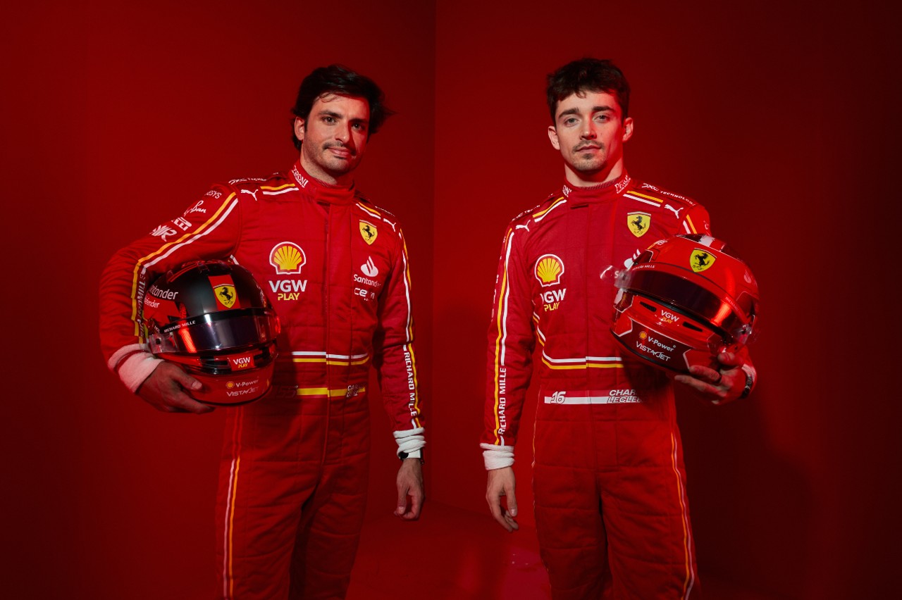 Las ruedas son rojas con una doble banda blanca y amarilla, colores que también figuran en los dorsales, 16 y 55, que siguen utilizando el tipo de letra oficial de la marca de Maranello, Ferrari Sans, esta vez en cursiva. “Cuando vi el SF-24 por primera vez, me moría de ganas de subirme a él y arrancarlo. Ahora, estoy deseando conducirlo en la pista para ver si se corresponde con la sensación que tuve en el simulador, que es que es el paso adelante que todos queremos”, dijo Carlos Sáinz.
