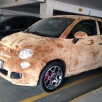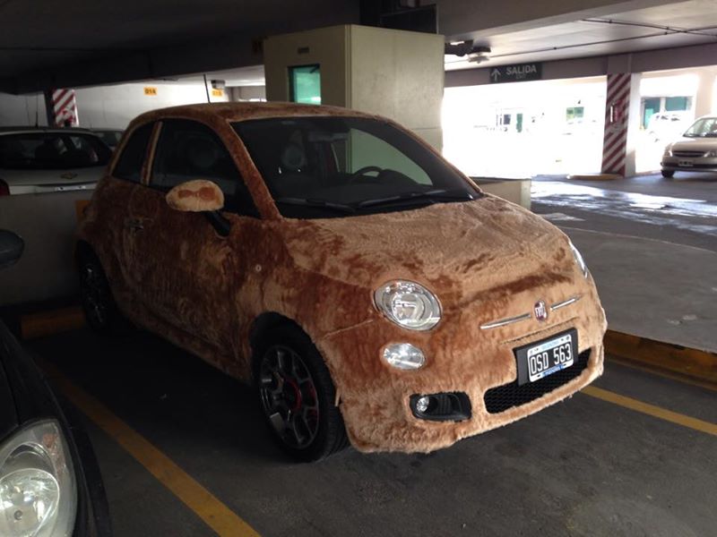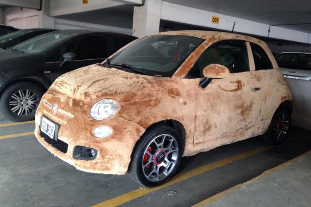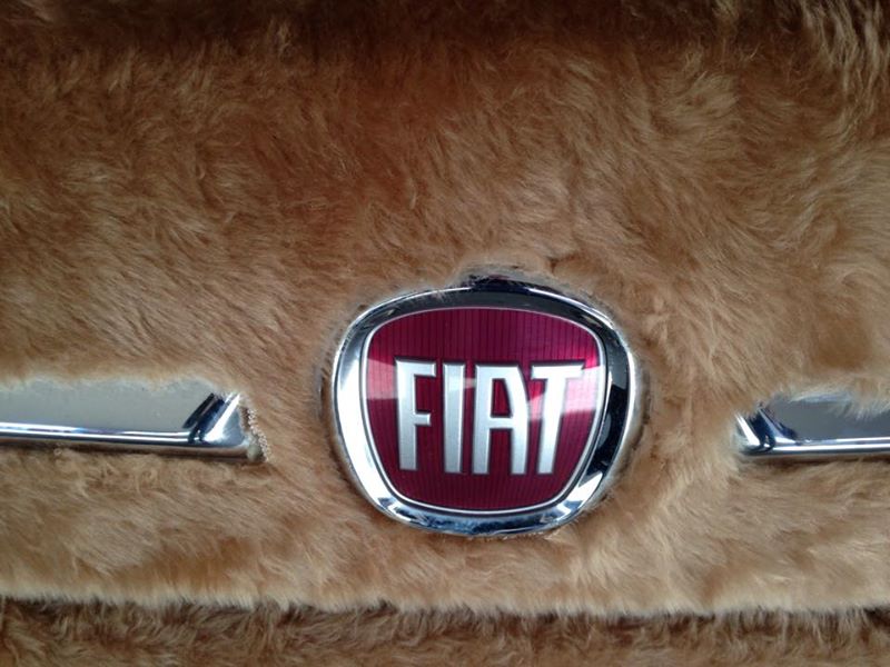 Un Fiat 500 cubierto de esponjoso pelo sintético