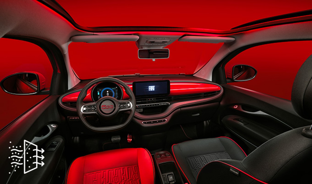 El interior también luce este llamativo color en el salpicadero, las alfombrillas y los asientos exclusivos realizados con hilo Seaqual derivado de plásticos recuperados de los océanos. Fiat explica que el rojo no será el único color de la serie especial, ya que la paleta de pinturas exteriores incluye otras tonalidades específicas para cada modelo, como el Mineral Grey, Ice White y Onyx Black.
