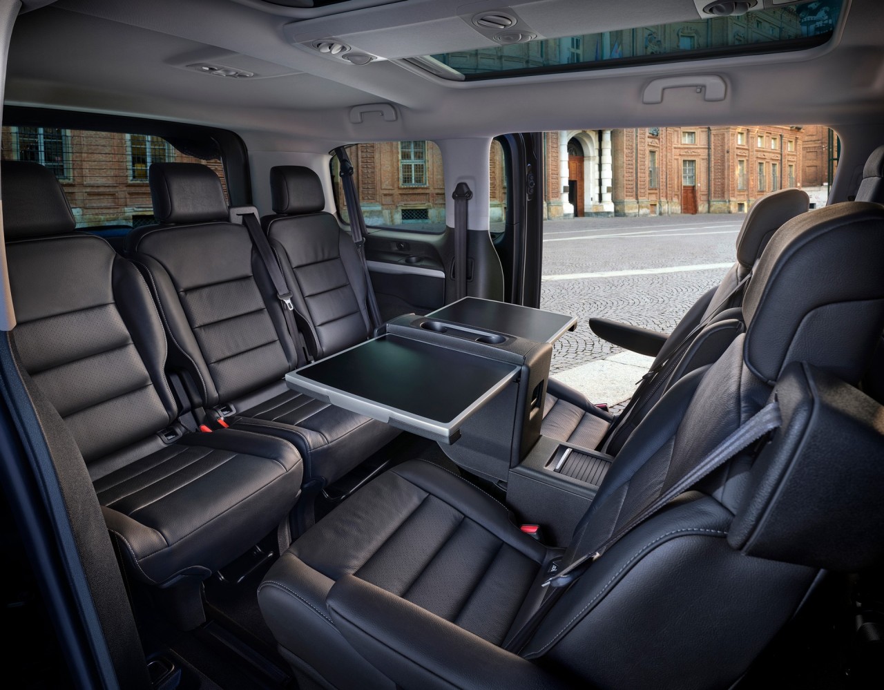 Paralelamente a la versión estándar, la variante E-Ulysse Lounge para siete pasajeros se anuncia como una “sala de estar sobre ruedas”. Integra cinco asientos traseros y una mesa plegable en el centro. Los compradores también encontrarán un techo solar panorámico de cristal, asientos delanteros de cuero con calefacción y función masaje. Otros puntos destacables es un sistema de purificación de aire y asientos traseros montados sobre rieles para configurar una posición exacta en el interior.