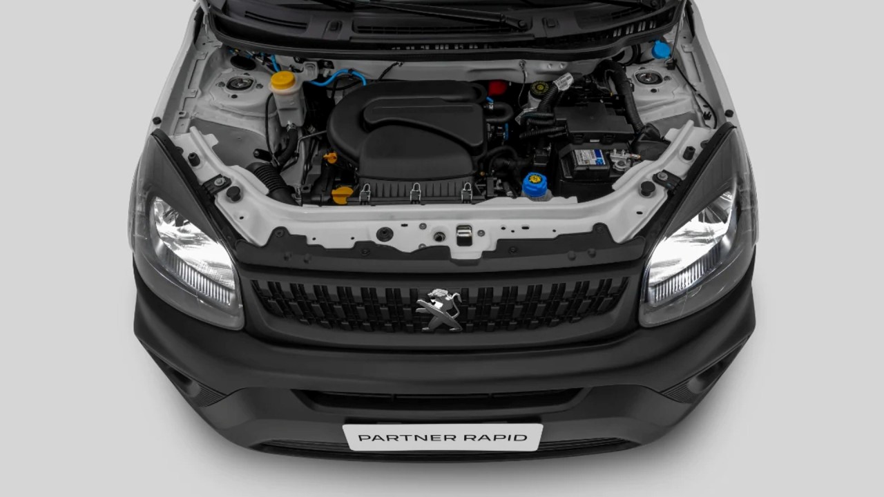 Bajo el capó se esconde la última versión del motor 1.4 EVO Flex de cuatro cilindros y ocho válvulas de aspiración natural. Desarrolla 84 CV de potencia y 116 Nm de par cuando funciona con gasolina, u 86 CV y 120 Nm cuando lo hace con etanol. La potencia se envía al eje delantero a través de una caja de cambios manual de cinco velocidades. A su vez, el Peugeot Partner Rapid tiene una capacidad de carga de 650 kilos y un espacio de carga de 3,3 m3 gracias a la forma cuadrada de la parte trasera.